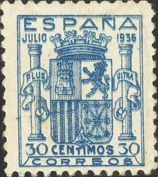 ★ 801ed. (1936ca). 30 cts azul (leve manchita sin importancia). Variedad DOBLE IMPRESION. MAGNIFICO Y MUY RARO. Edifil 2021: 825 Euros