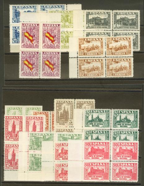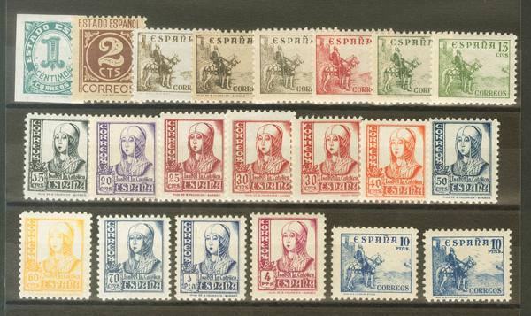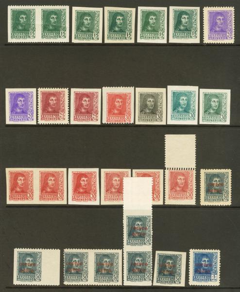 ★★/(★)1938. Espectacular e interesante conjunto de variedades de la serie de Fernando el Católico incluyendo algunos sin dentar y bloques de cuatro, alguna variedad de enorme interés y sin catalogar. IMPRESCINDIBLE EXAMINAR.