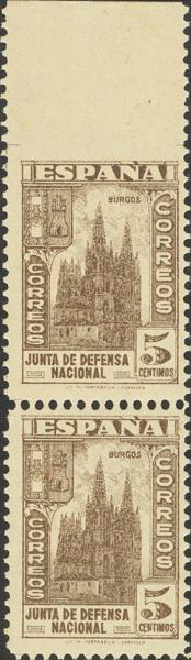 ★★ 804, 804sma. 1936. 5 cts castaño, pareja. Un sello variedad SIN DENTAR EL MARGEN SUPERIOR. MAGNIFICO.
