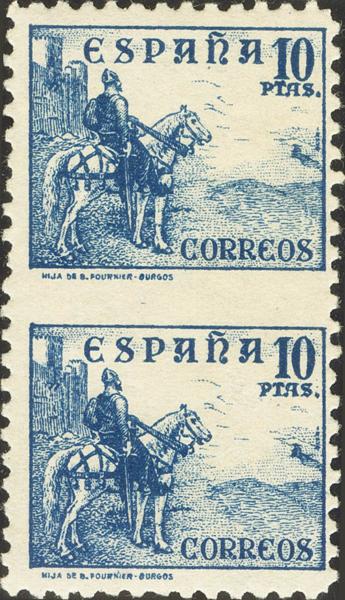 ★★ 831spv. 1937. 10 pts azul, pareja vertical. SIN DENTAR ENTRE LOS SELLOS. A EXAMINAR.