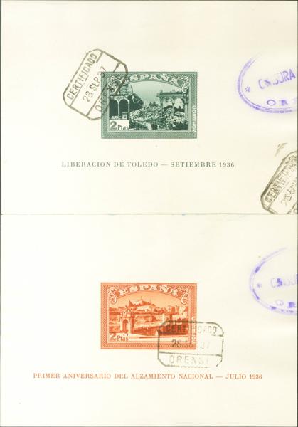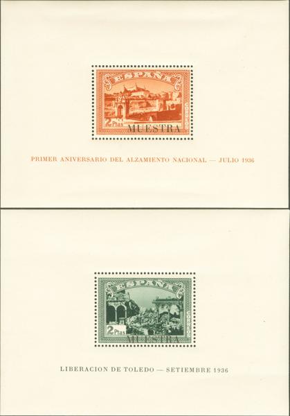 ★★ 836/37M. 1937. Hojas bloque (leve manchita en el margen derecho de la hojita de 2 pts naranja). MUESTRA. MAGNIFICAS. Edifil 2021: 94 Euros