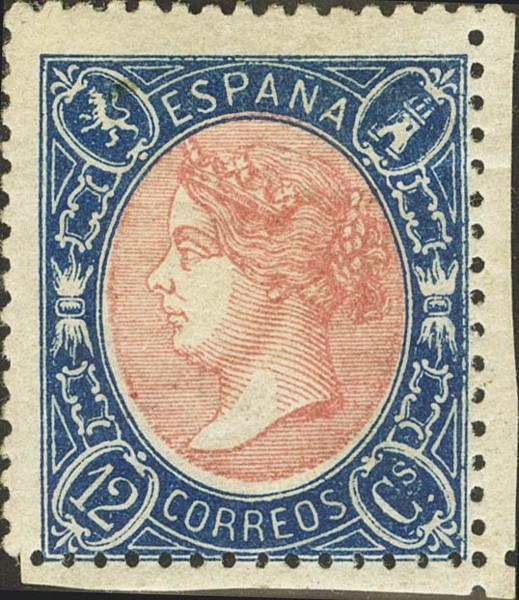 (★) 100A. 1868. 12 cuartos bermellón. Bonito centraje y color muy intenso. MAGNIFICO Y MUY RARO. Cert. CEM.
