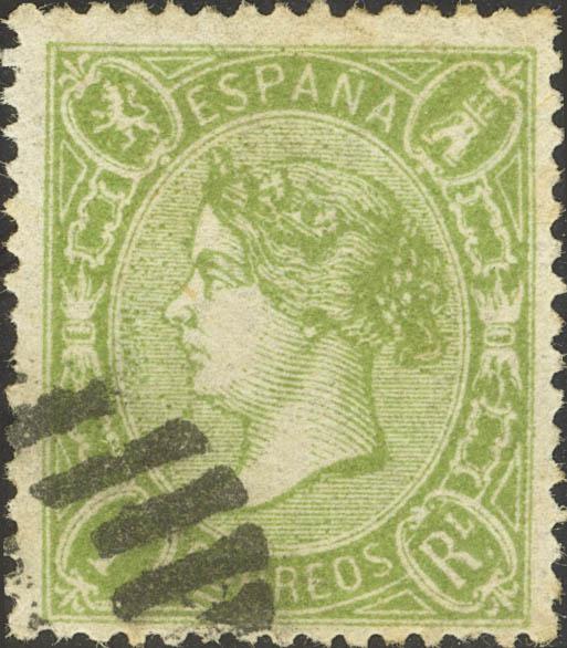 78. 1865. 1 real verde. Excelente centraje y color muy intenso. MAGNIFICO.