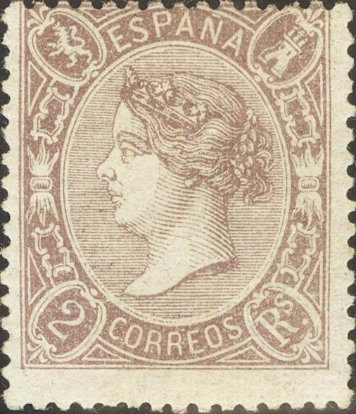 79. 1865. 2 reales lila oscuro. Centraje y color excepcionales. PIEZA DE LUJO.