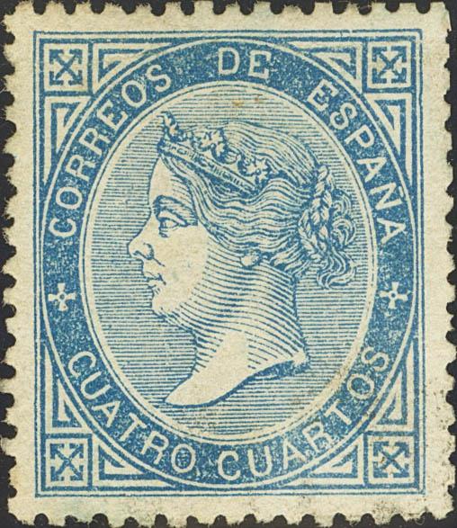 ★ 76. 1865. 12 cuartos azul (centraje habitual). Color intenso. MAGNIFICO. Cert. COMEX.