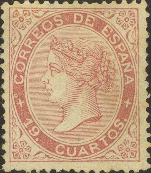 (★) 71. 1865. 19 cuartos castaño y rosa. MAGNIFICO. Cert. GRAUS.