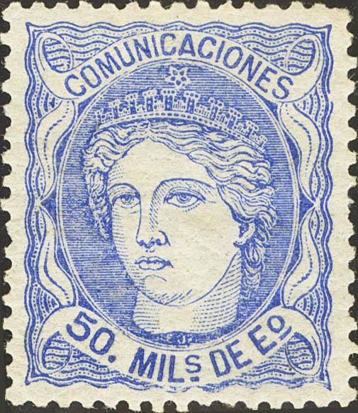 ★ 97. 1868. 25 mils azul. Color intenso y muy bien centrado. MAGNIFICO. Cert. CEM.