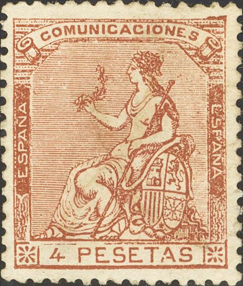 ★ 101. 1868. 19 cuartos castaño. Muy bien centrado y color intenso. MAGNIFICO Y MUY RARO EN NUEVO. Cert. GRAUS.