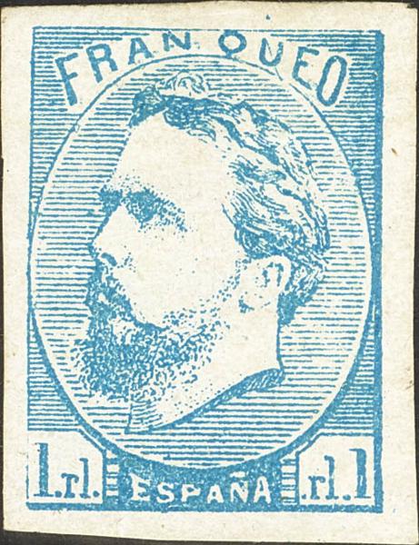 (★) 186P. 1876. 1 pts azul oscuro. PRUEBA DE PUNZON. MAGNIFICA Y RARA. (Gálvez IG38)