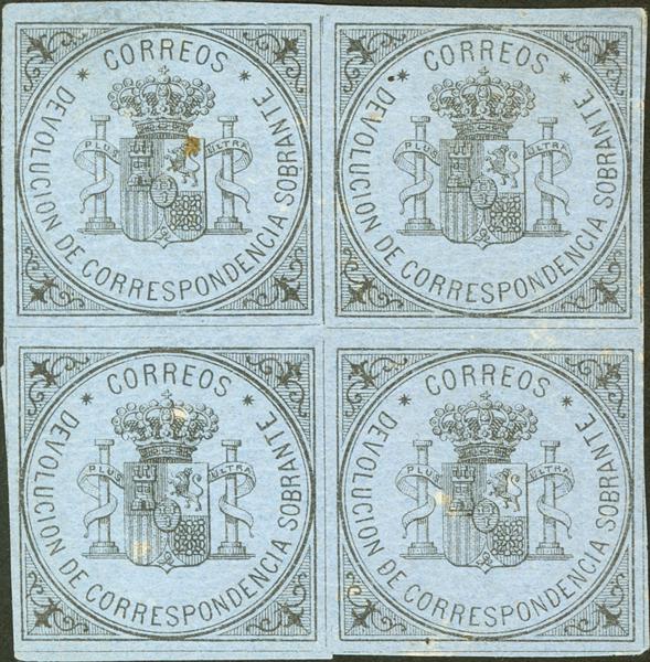 (★) 172(4). 1875. Sin valor, bloque de cuatro (conservación habitual). DEVOLUCION DE CORRESPONDENCIA. MAGNIFICO. Edifil 2020: 550 Euros