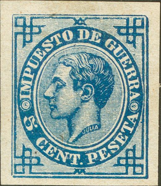 ★ 183ecs. 1876. 5 cts azul. ERROR DE COLOR y SIN DENTAR. MAGNIFICO.