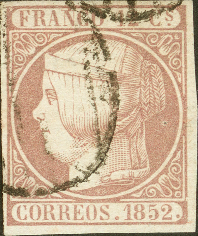 13. 1852. 12 cuartos lila. MAGNIFICO.