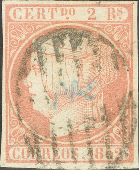 14F. 1854. 2 reales naranja pálido. FALSO SPERATI (Tipo D), al dorso marca de la B.P.A. MAGNIFICO.
