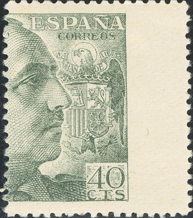 ★ 1051dv. 1949. 40 cts verde gris. DENTADO VERTICAL DESPLAZADO. MAGNIFICO.