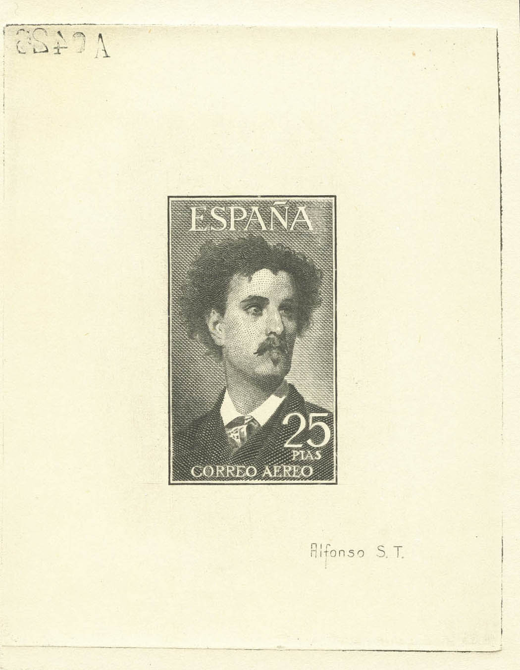 (★) 1164P. 1955. 25 pts verde oscuro. PRUEBA DE PUNZON. MAGNIFICO Y RARISIMO.