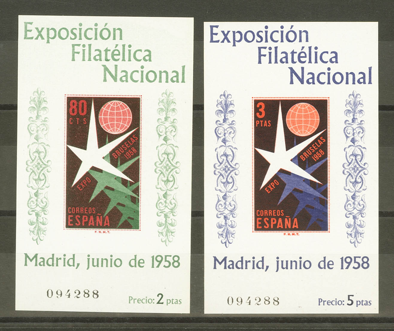 ★★ 1222/23. 1958. Hojas bloque. Misma numeración. MAGNIFICAS. Edifil 2024: 60 Euros