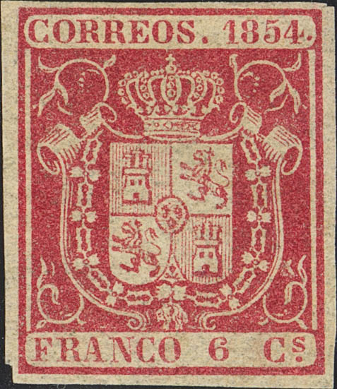★ 24. 1854. 6 cuartos carmín. MAGNIFICO. Cert. GRAUS.