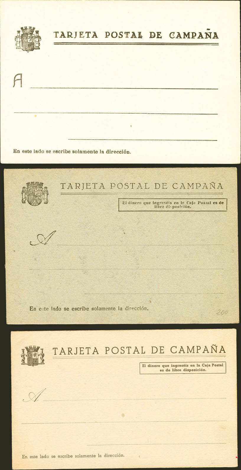 (★)(1937ca). Conjunto de tres tarjetas postales de Campaña diferentes. MAGNIFICAS.