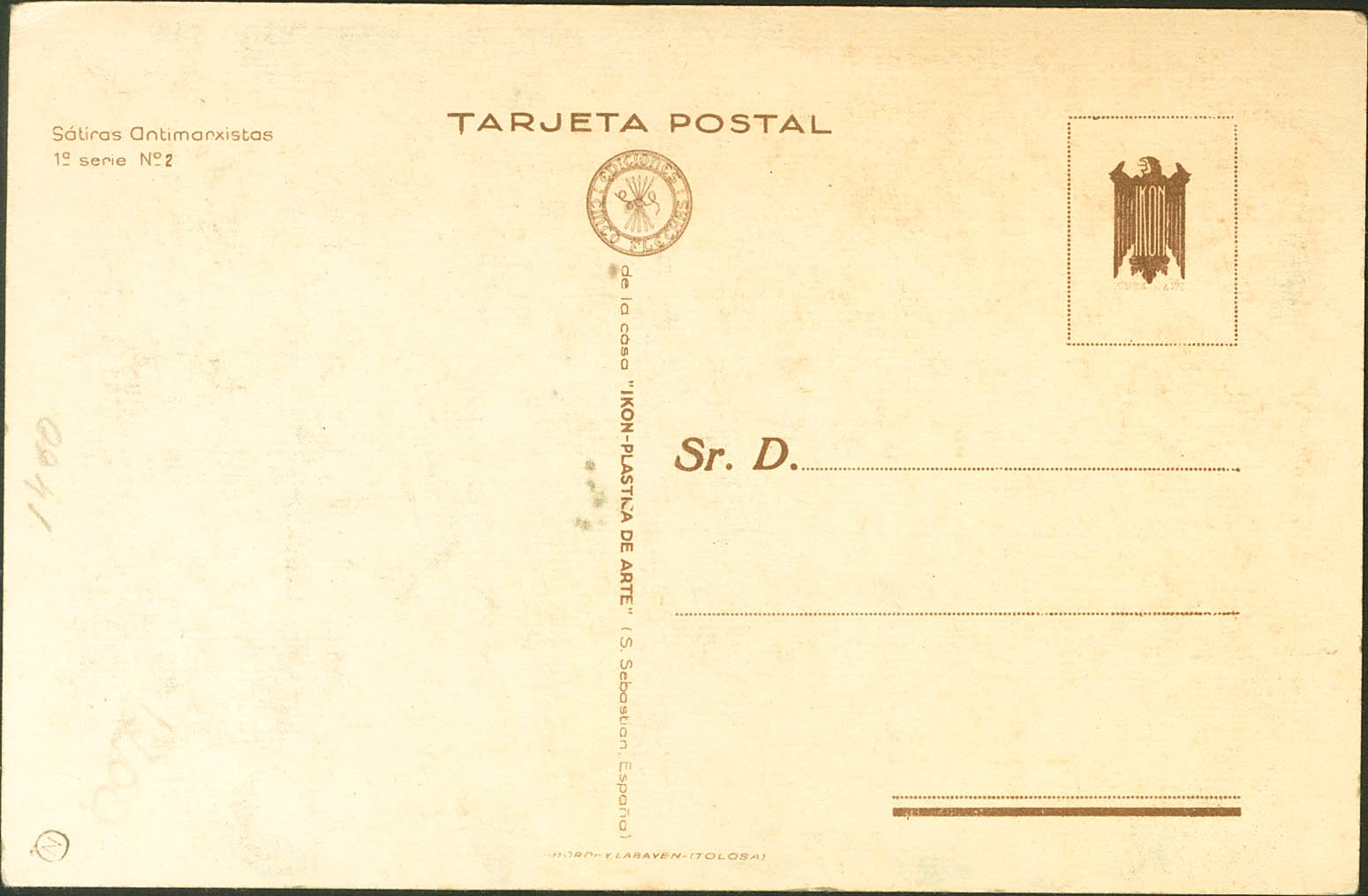 (★)1938. Tarjeta Postal Ilustrada Sátiras Antimarxistas FRASE HISTORICA DE AZAÑA. MAGNIFICA Y RARA. (Allepuz 532)
