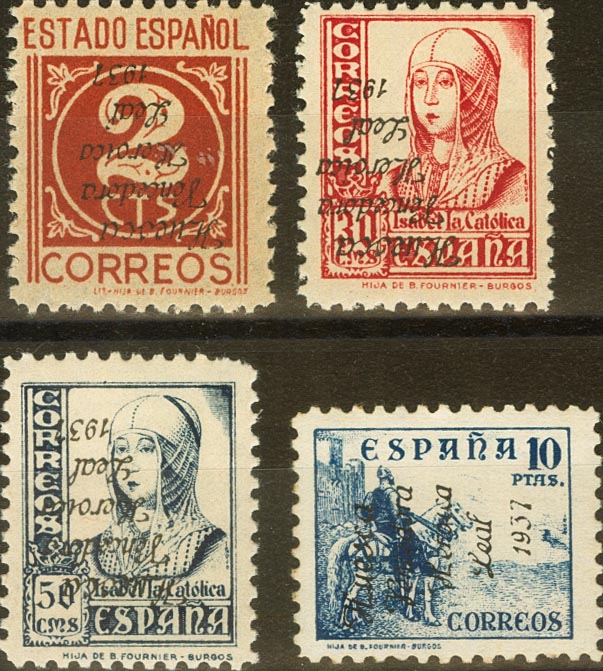 ★★/★ 2/15hi. 1937. Serie completa, cuatro valores. SOBRECARGA INVERTIDA. MAGNIFICA Y RARISIMA. (el 10 pts dictamen GRAUS). Edifil 2017: 740 Euros