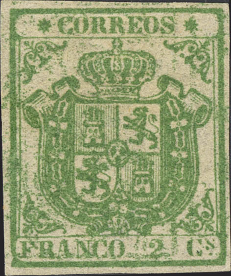 (★) 32. 1854. 2 cuartos verde. MAGNIFICO. Cert. CEM.