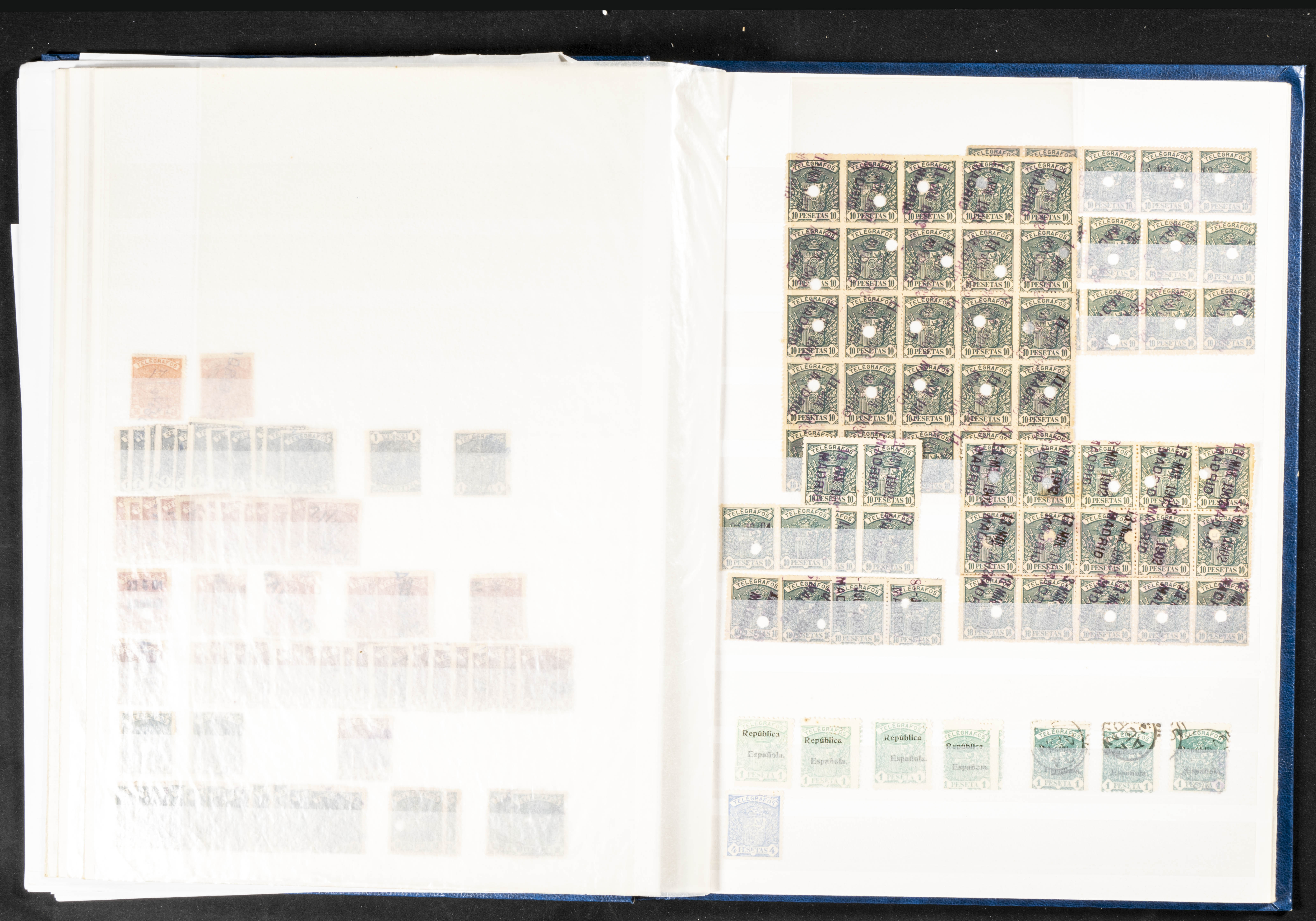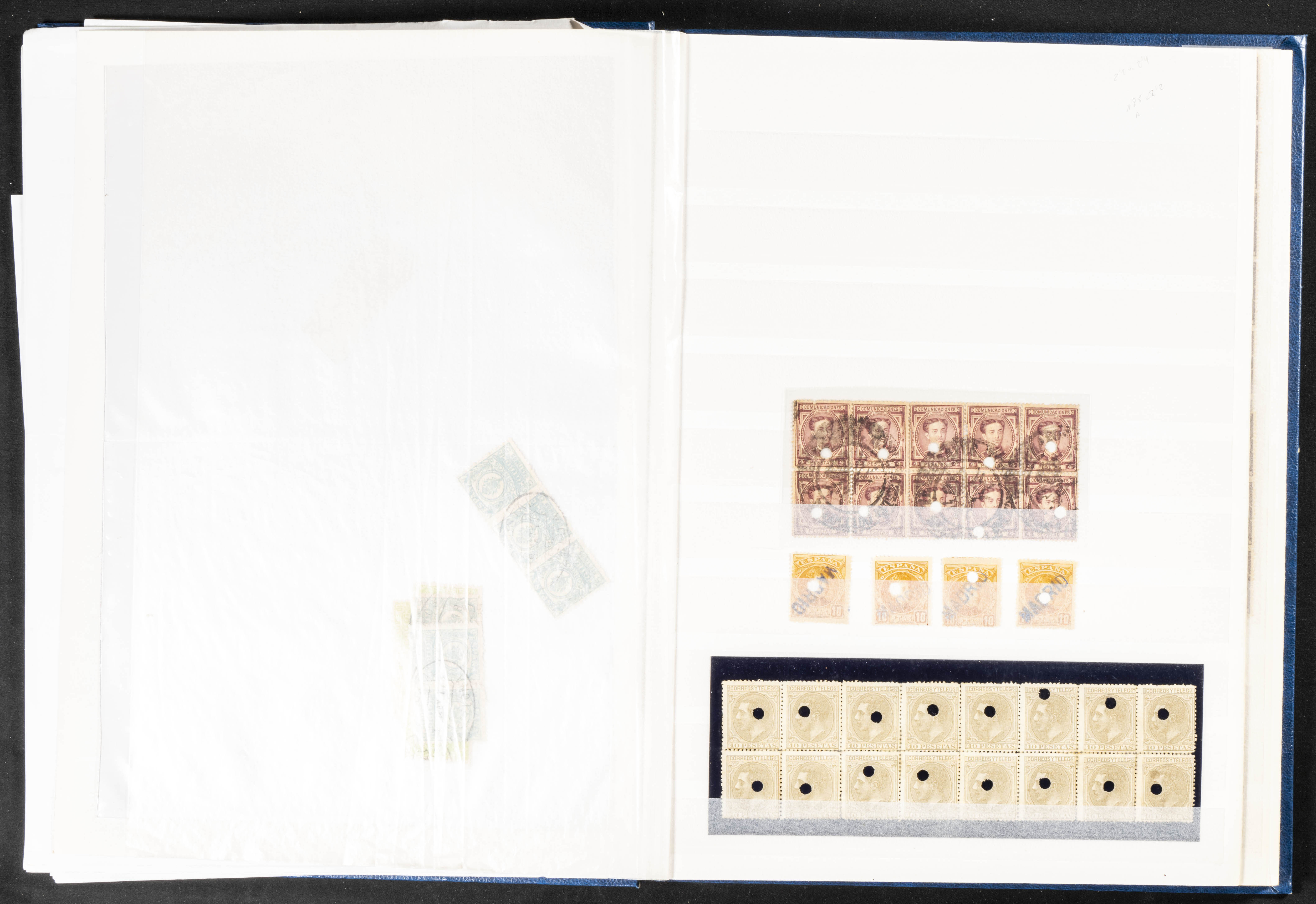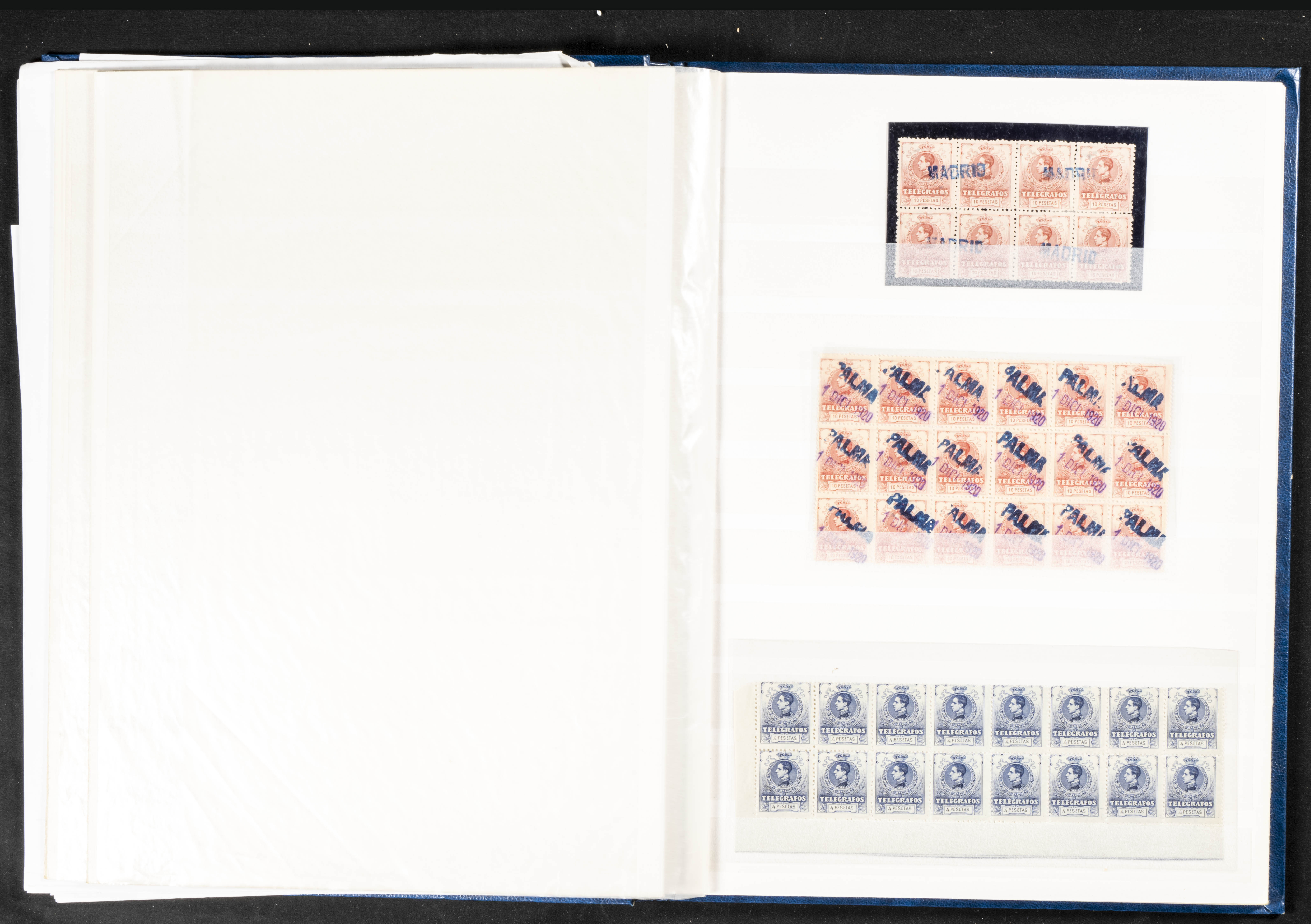 (1921ca). Interesante conjunto de sellos de Telégrafos entre 1921 y 1940 con matasellos o anulaciones de Madrid, incluye sellos clásicos entre 1876 y 1901 con taladro de telégrafos y otros matasellos especiales, además de un bloque de dieciséis del 4 pts azul de 1921 nuevo. A EXAMINAR.