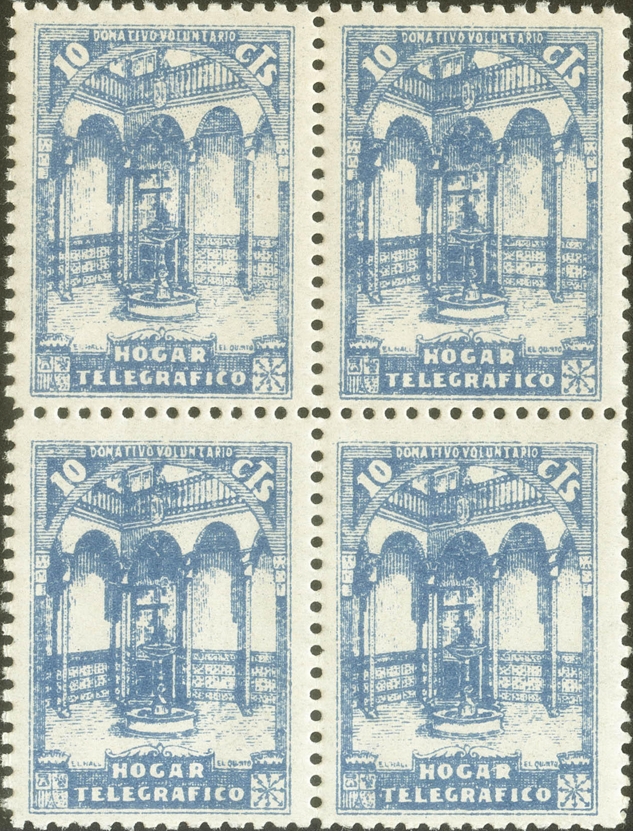 ★★ 13(4). 1938. 10 cts azul, bloque de cuatro. Excelente centraje. MAGNIFICO Y MUY RARO. Edifil 2024: +760 Euros