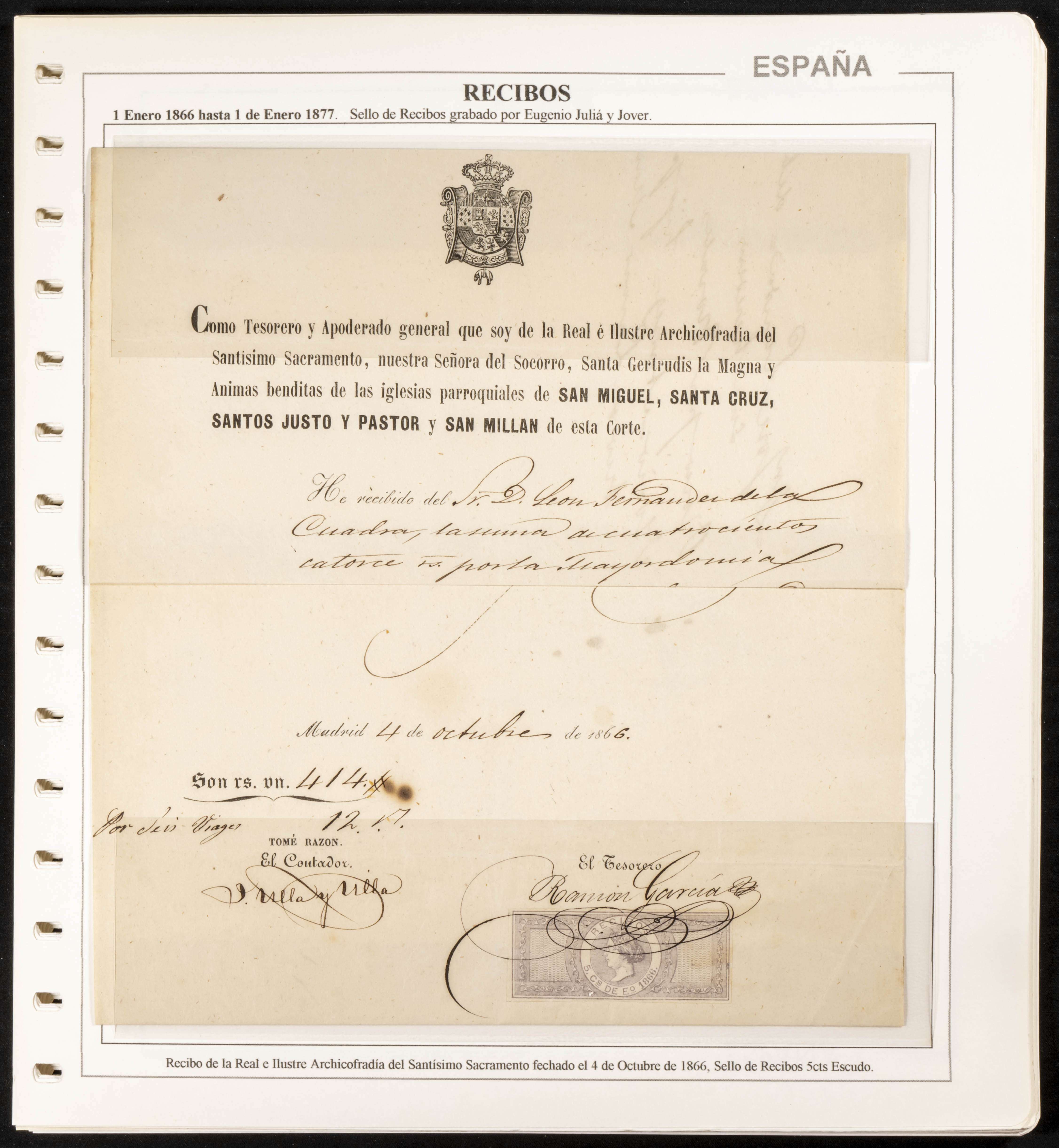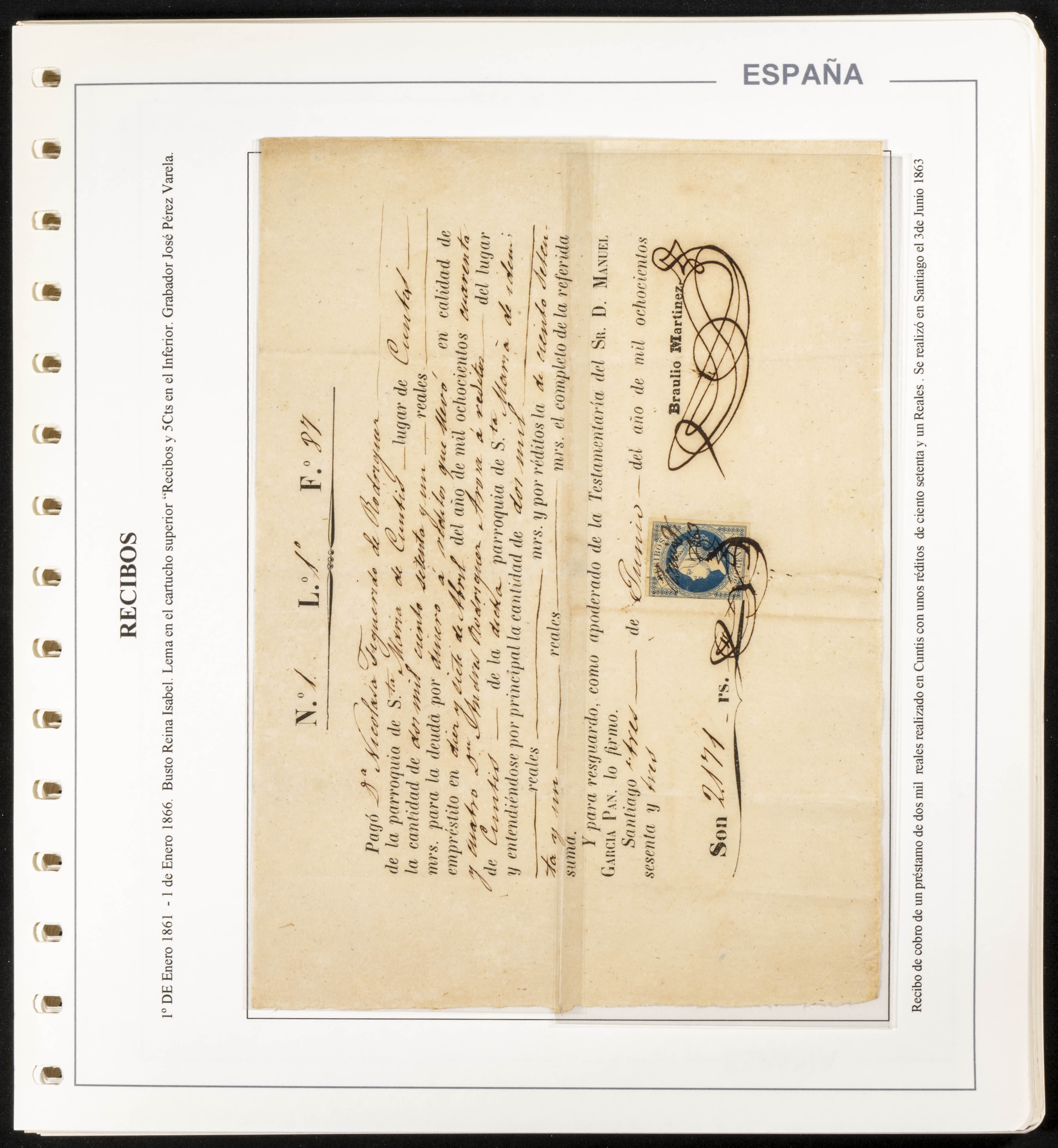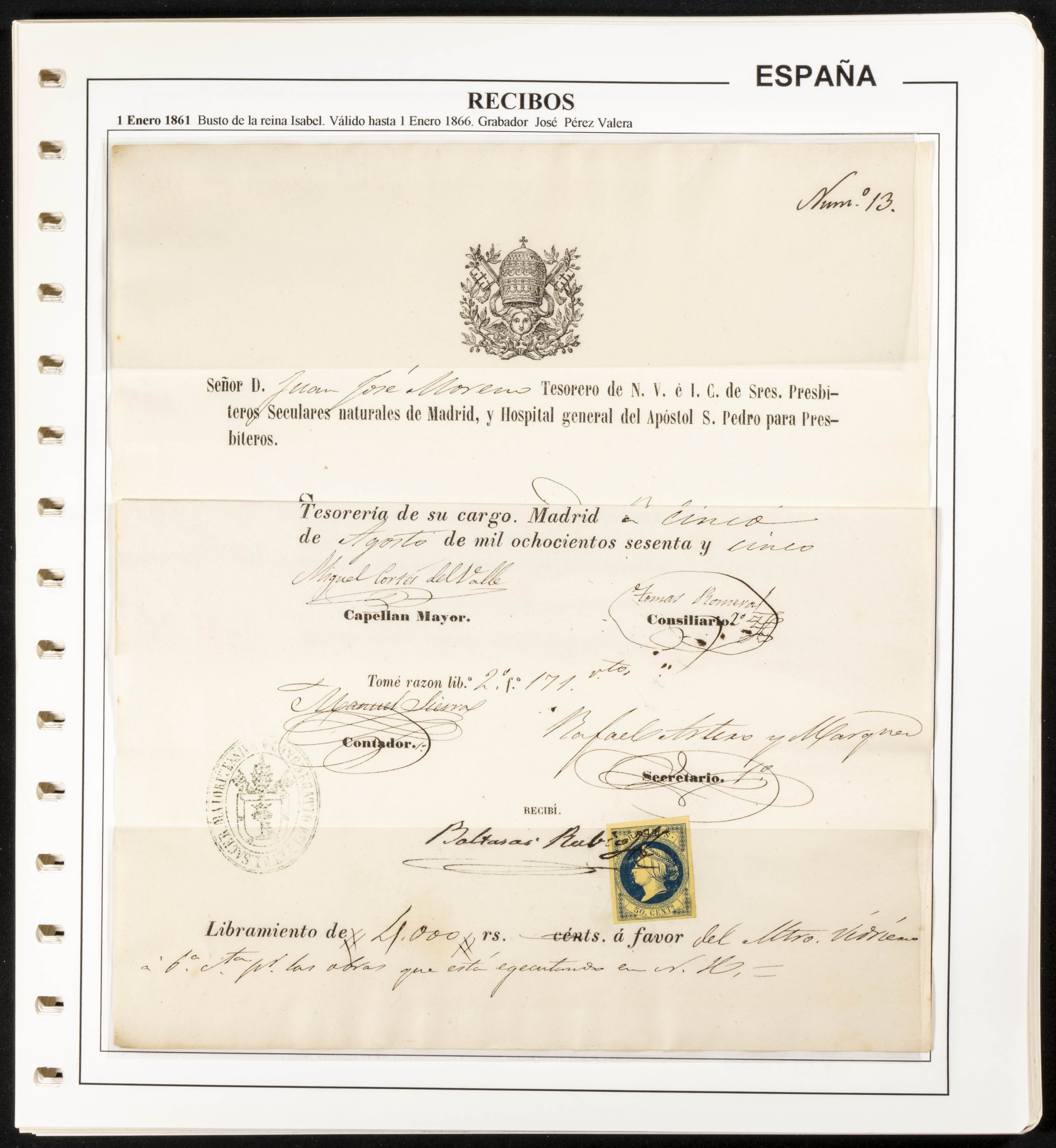 ★/(1861ca). Espectacular colección de Fiscales de RECIBOS entre 1861 y 1881, en nuevo y usado, aparte de los sellos tipo, incluye numerosas variedades de color, diferentes cancelaciones, siete documentos diversos, Ensayos de color, grandes bloques, Habilitados por la Nación, sobrecargas de Impuesto de Guerra, Maculaturas, etc. MAGNIFICO Y MUY COMPLETO Y RARO CONJUNTO.