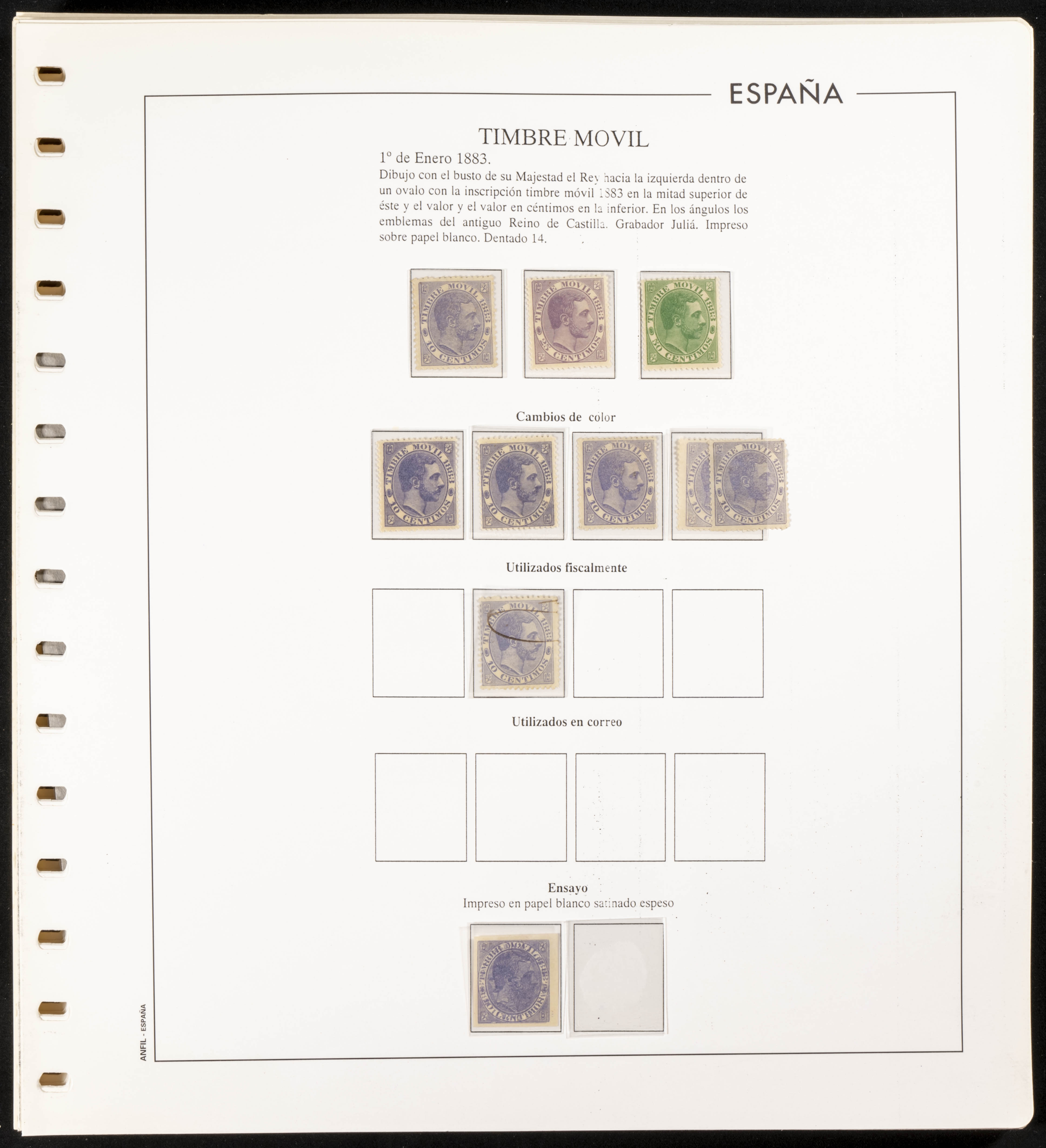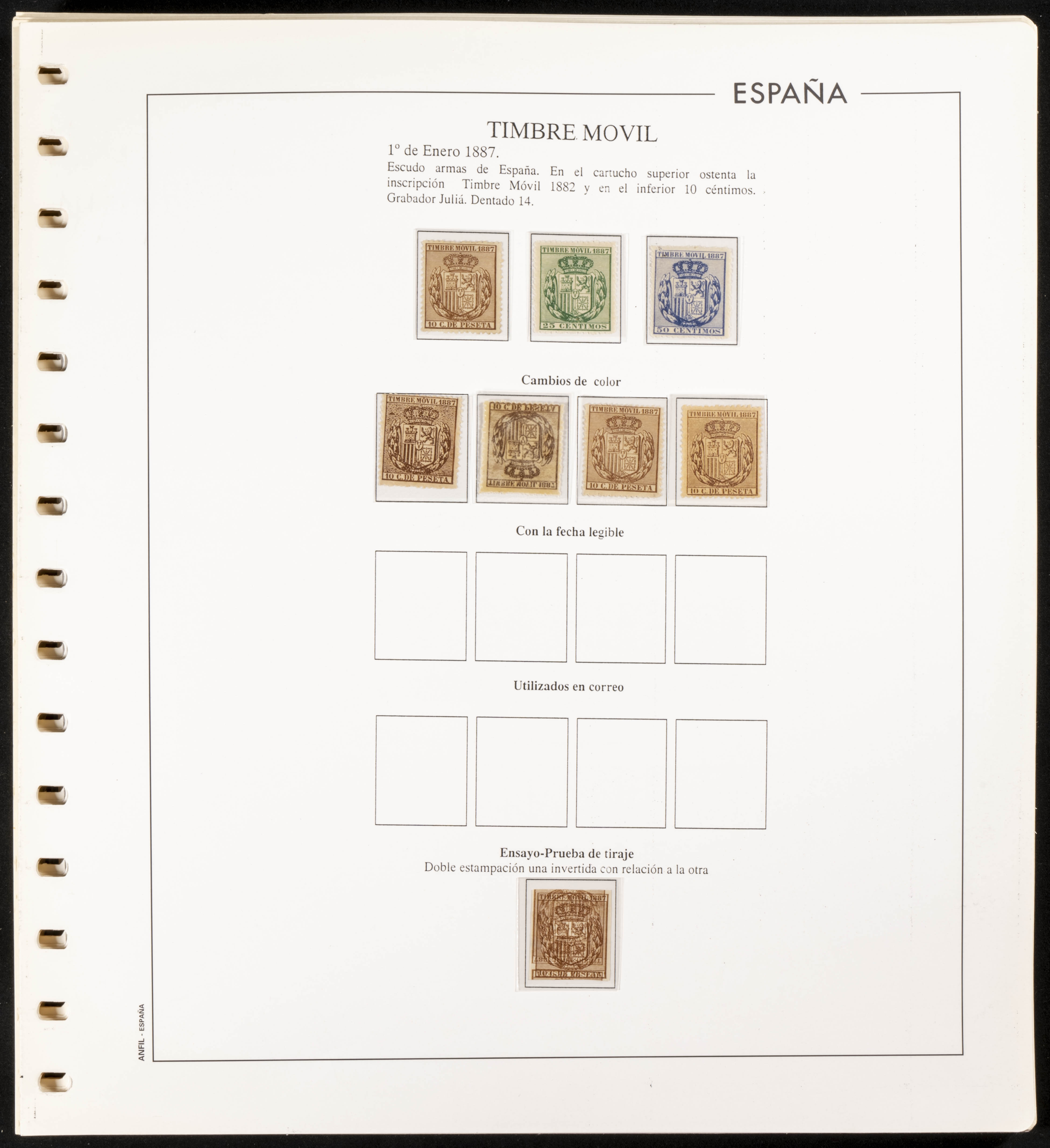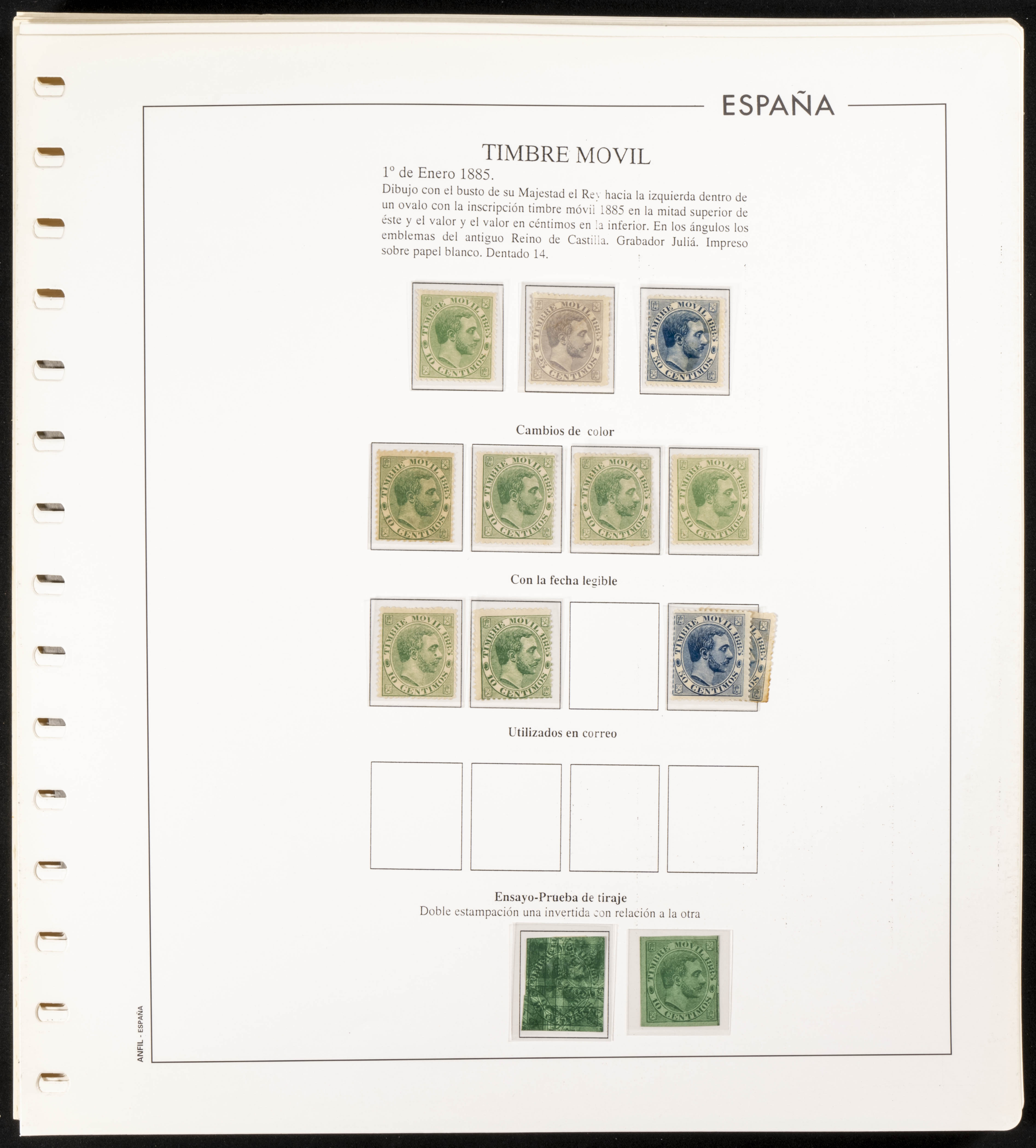 ★/(1882ca). Espectacular colección de Fiscales de TIMBRE MOVIL y ESPECIAL MOVIL entre 1882 y 1911, en nuevo y usado, aparte de los sellos tipo, incluye numerosas variedades (impresión sobre la goma, sin dentar, defectos de impresión, etc), diferentes tonalidades, matasellos diversos, algún Ensayo de color y documentos o cartas y fiscales publicitarios. MAGNIFICO Y MUY COMPLETO Y RARO CONJUNTO.
