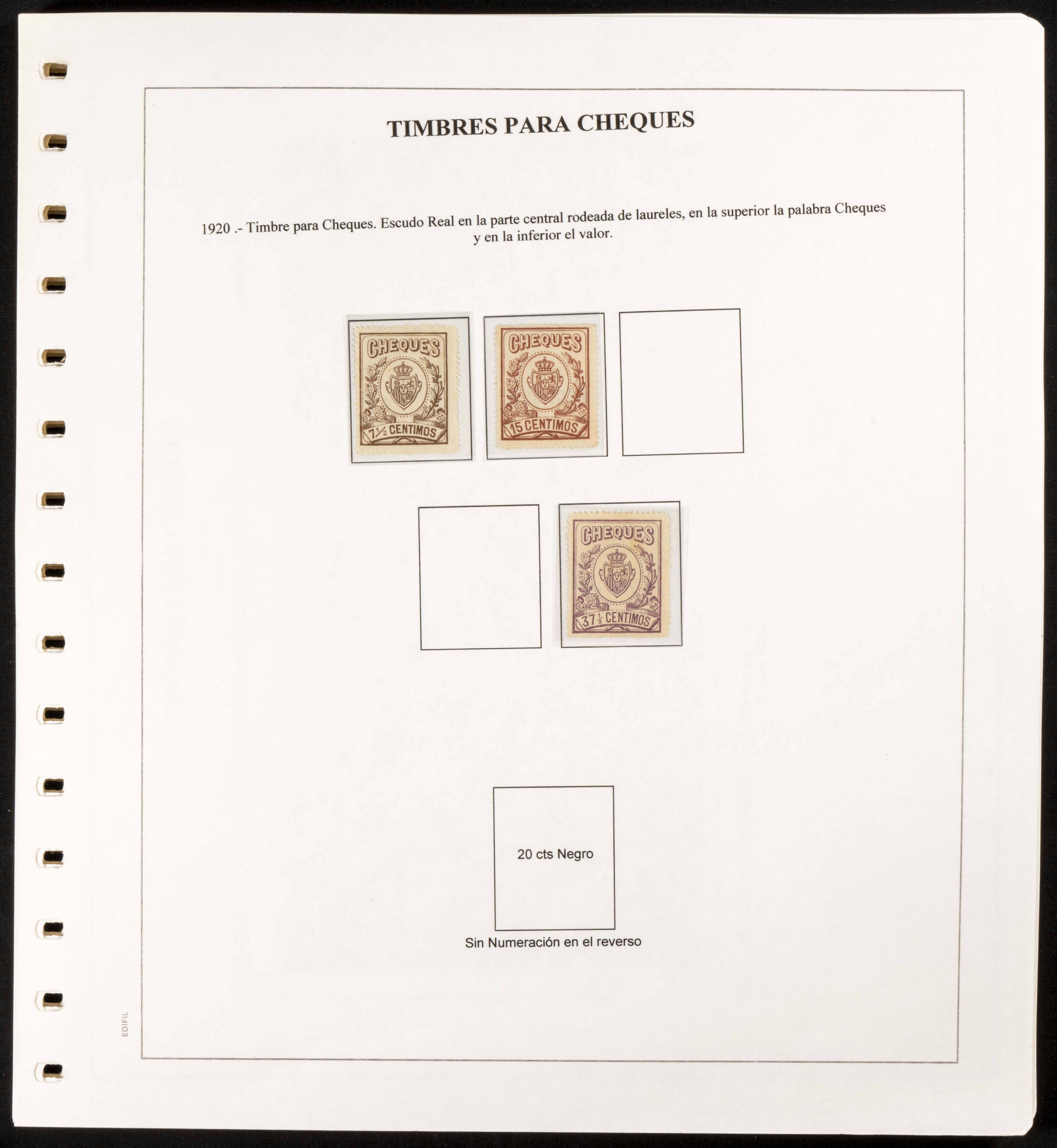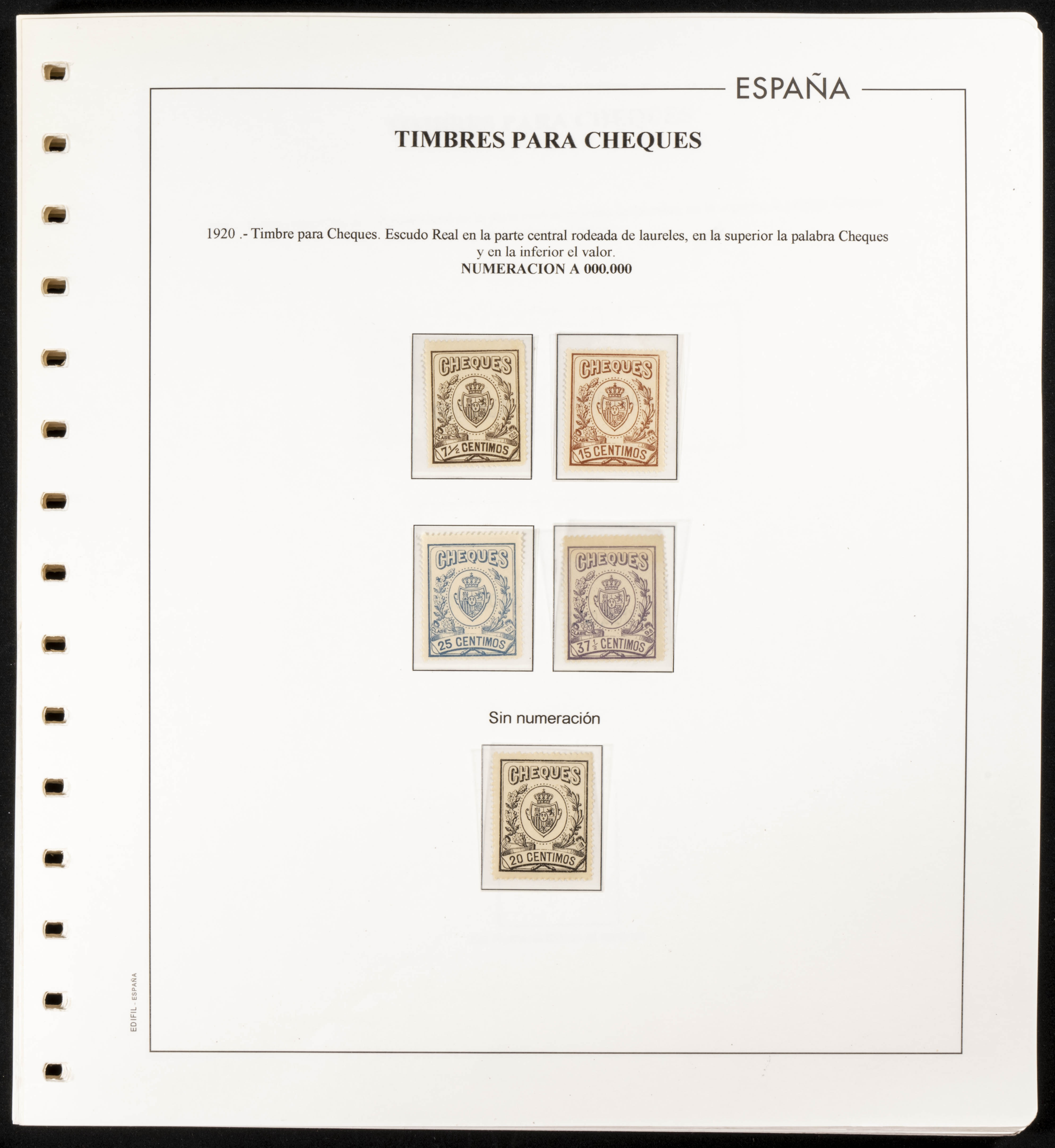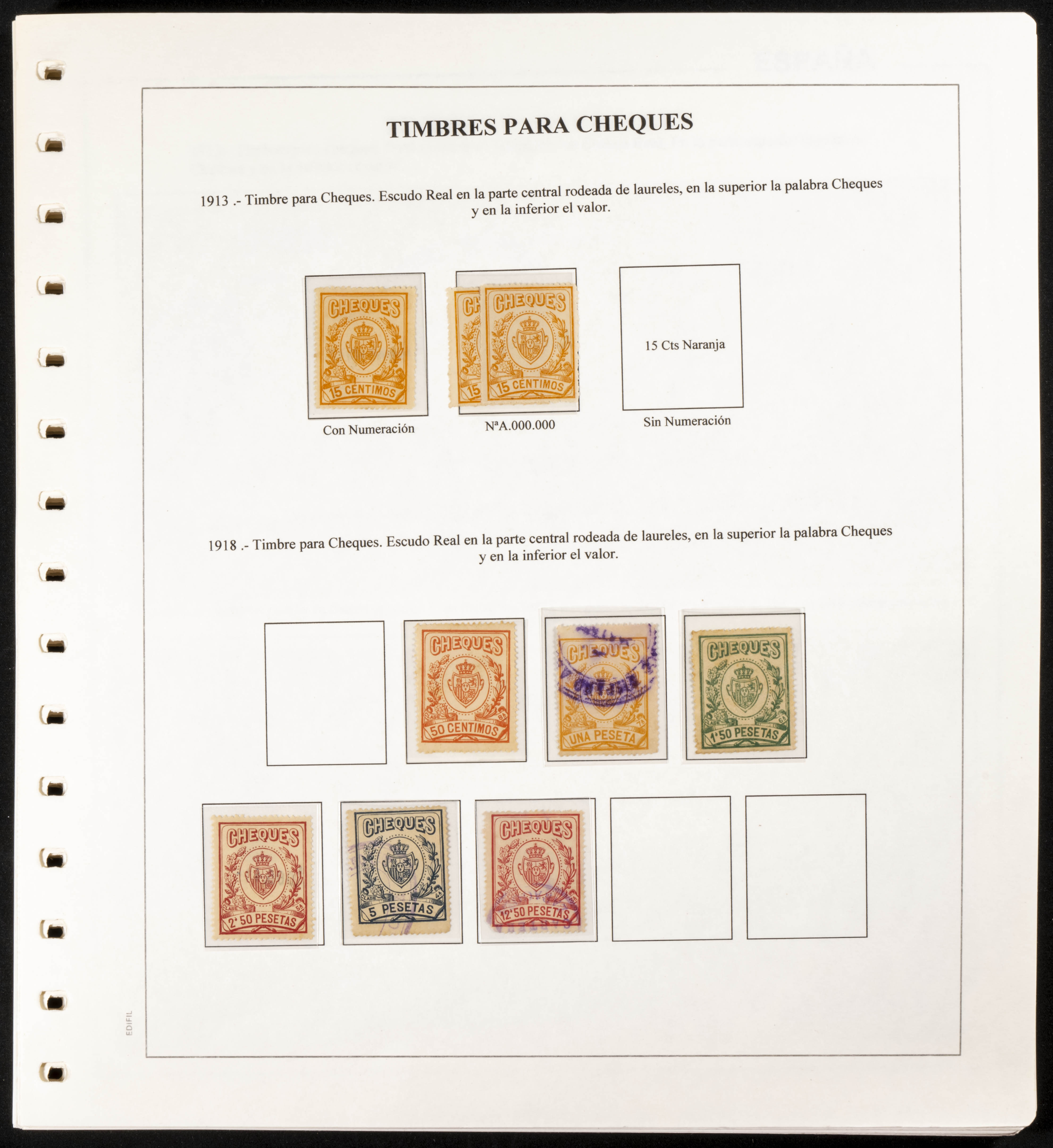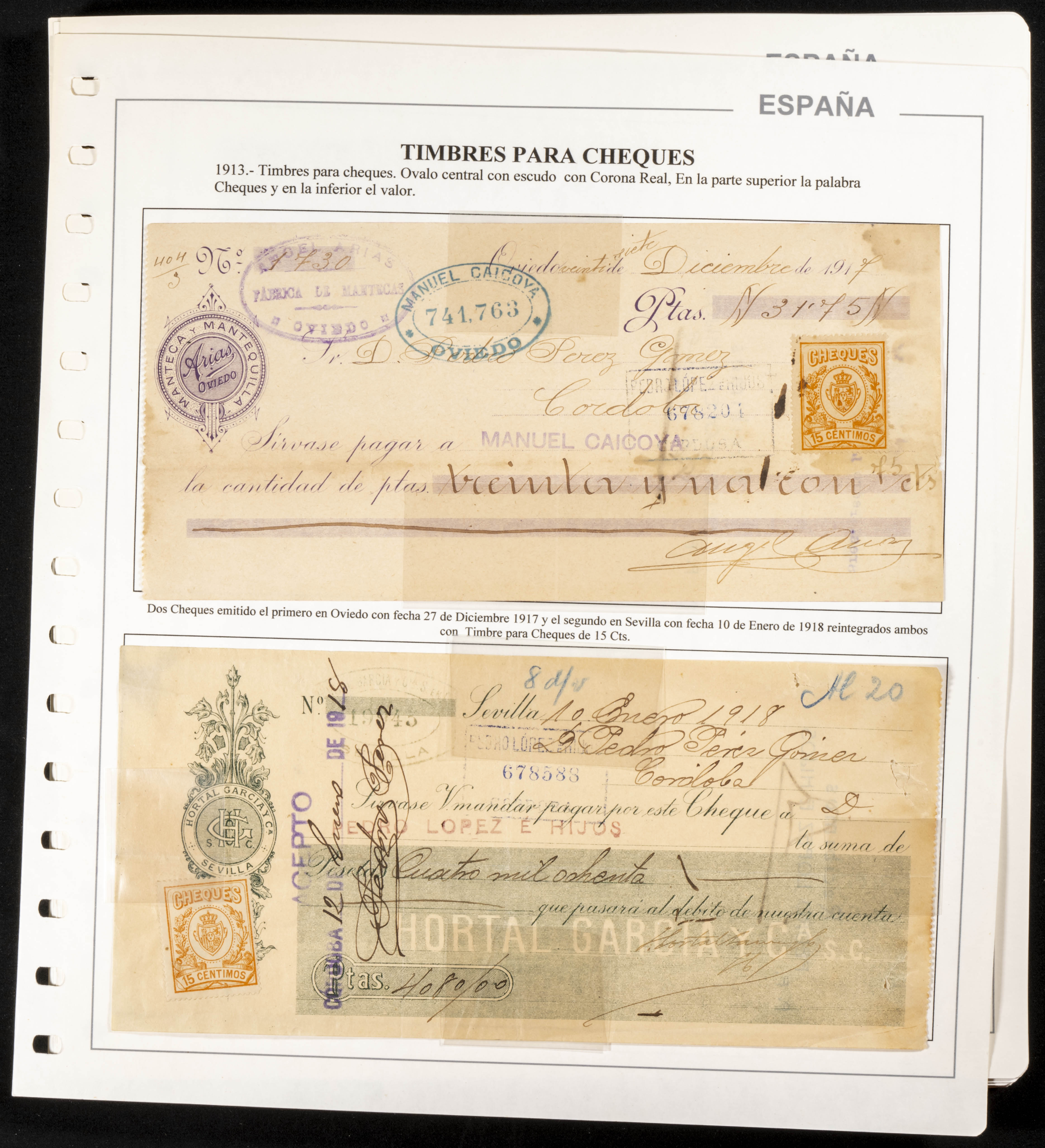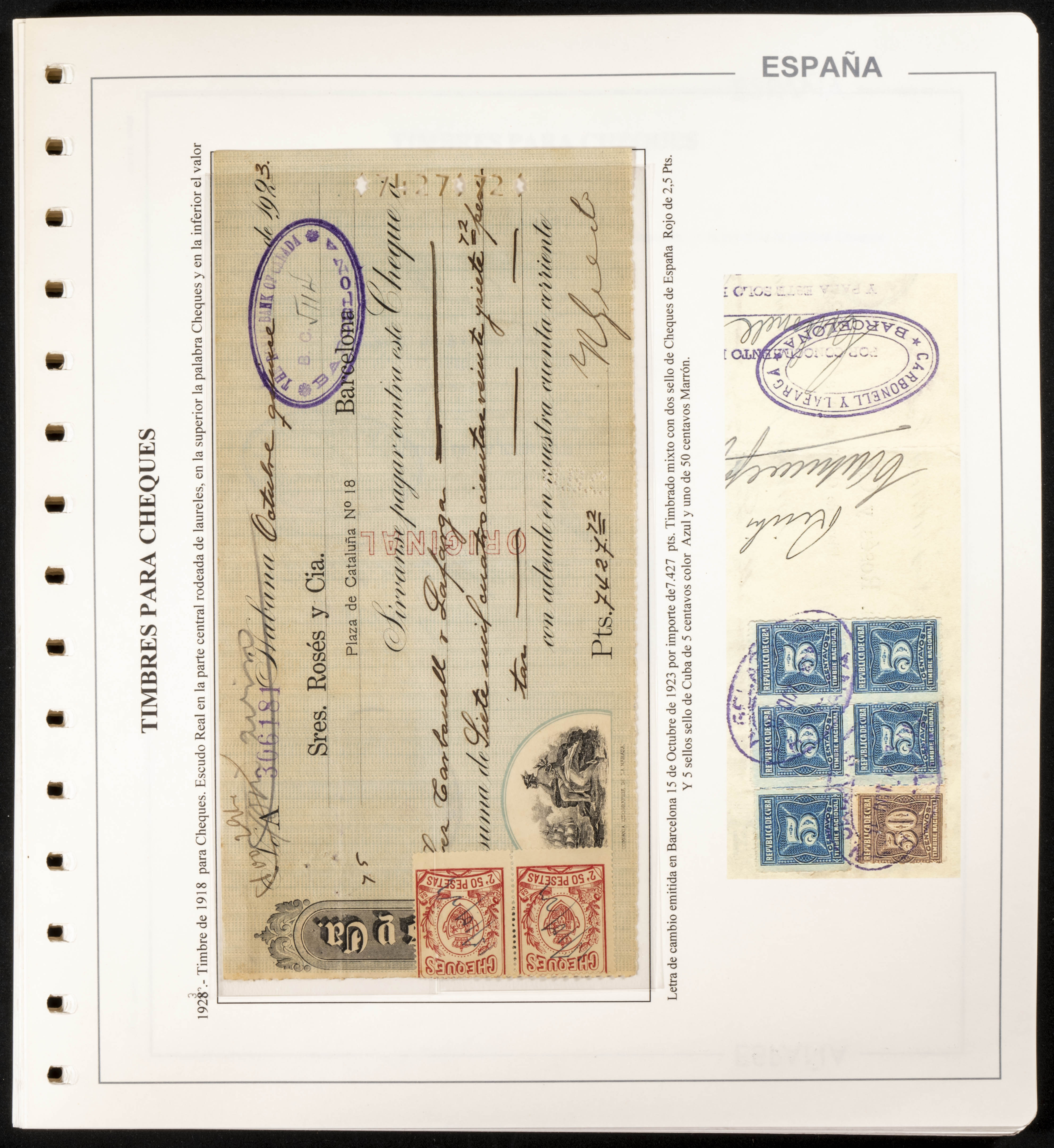 ★/(1913ca). Espectacular colección de Fiscales de CHEQUES entre 1913 y 1937, en nuevo y usado, además de los sellos tipo y series completas incluye pagarés, letras, cheques y cartas circuladas, así como algunos bloques nuevos, uno de doce, cabecera de pliego del 25 cts azul (con pie de imprenta). MAGNIFICO Y RARO CONJUNTO.