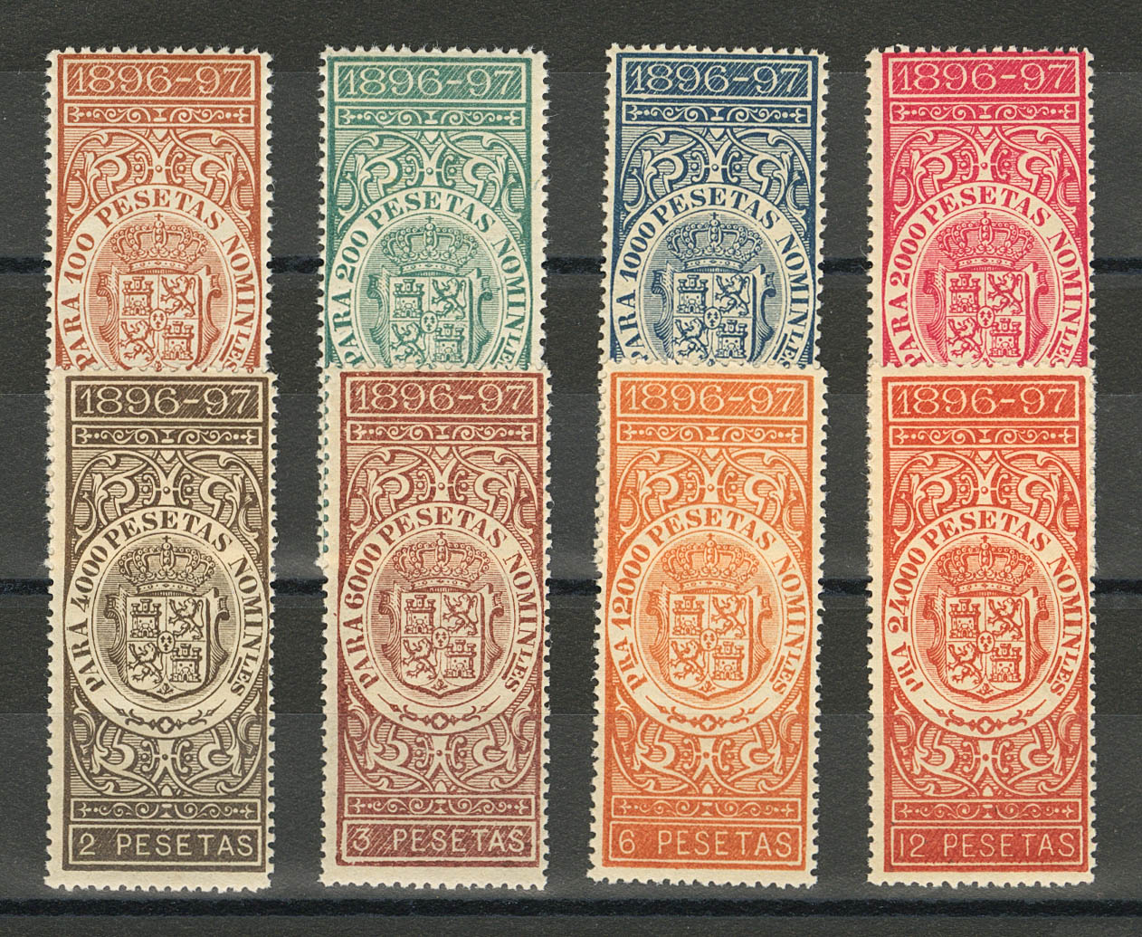 ★★1896. Serie completa, ocho valores. DEUDA EXTERIOR. MAGNIFICA. (Alemany 1/8)