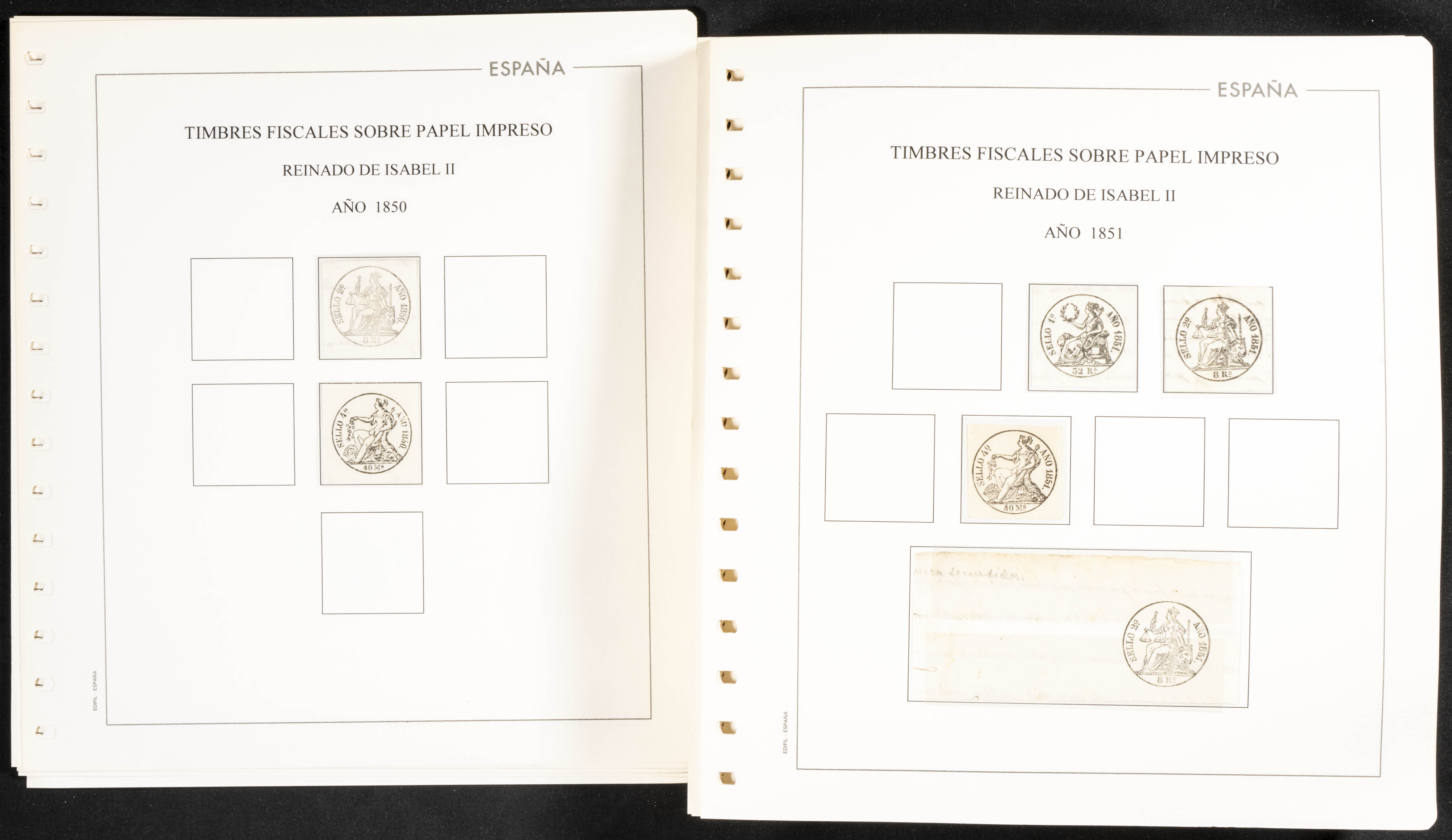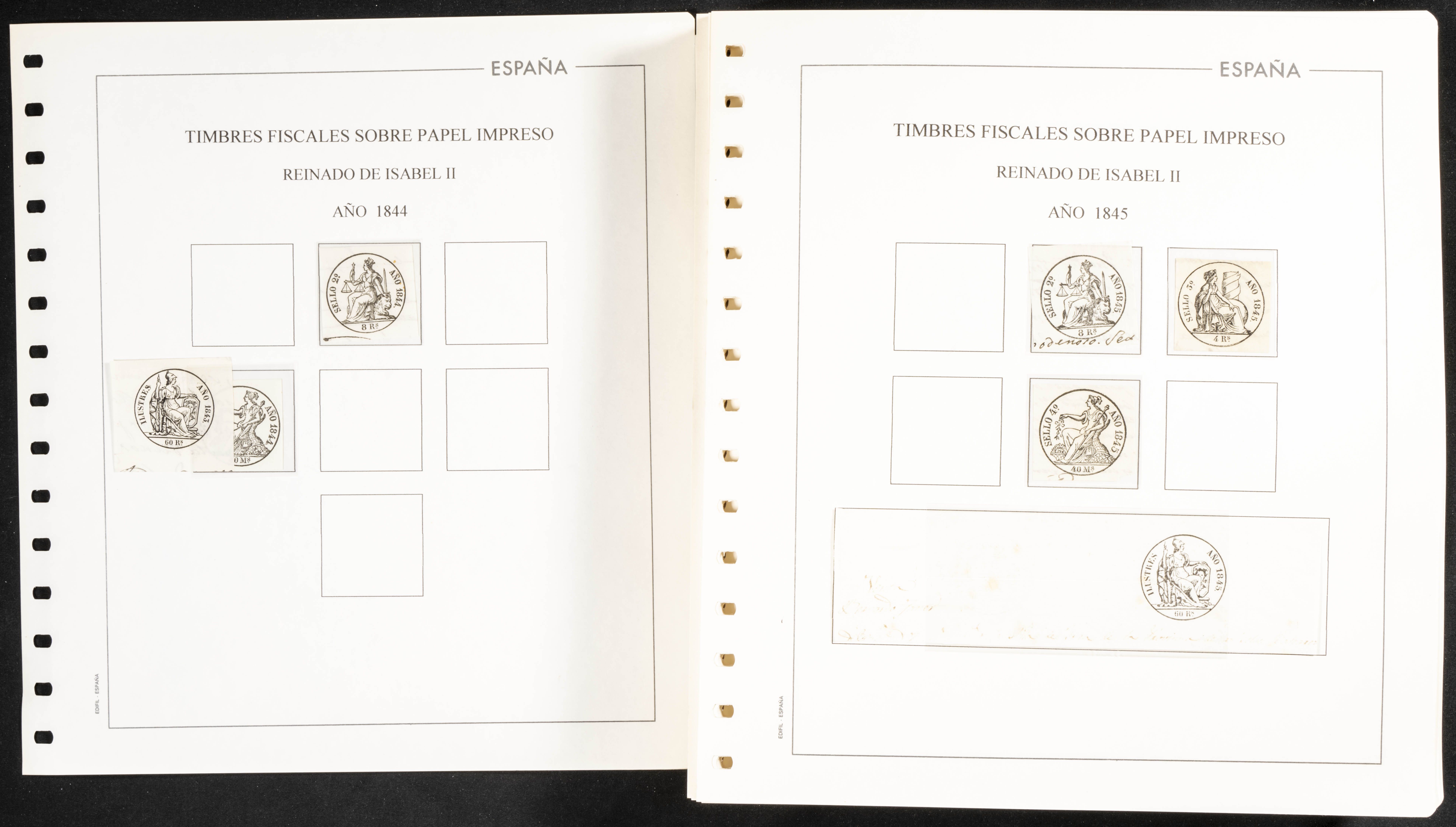(★)/(1845ca). Interesante y muy completa colección de POLIZAS recortadas de papel sellado entre 1845 y 1932, incluyendo en muchos casos los valores más altos emitidos, la mayoría sin inutilizar, además de algún fragmento. IMPRESCINDIBLE EXAMINAR.