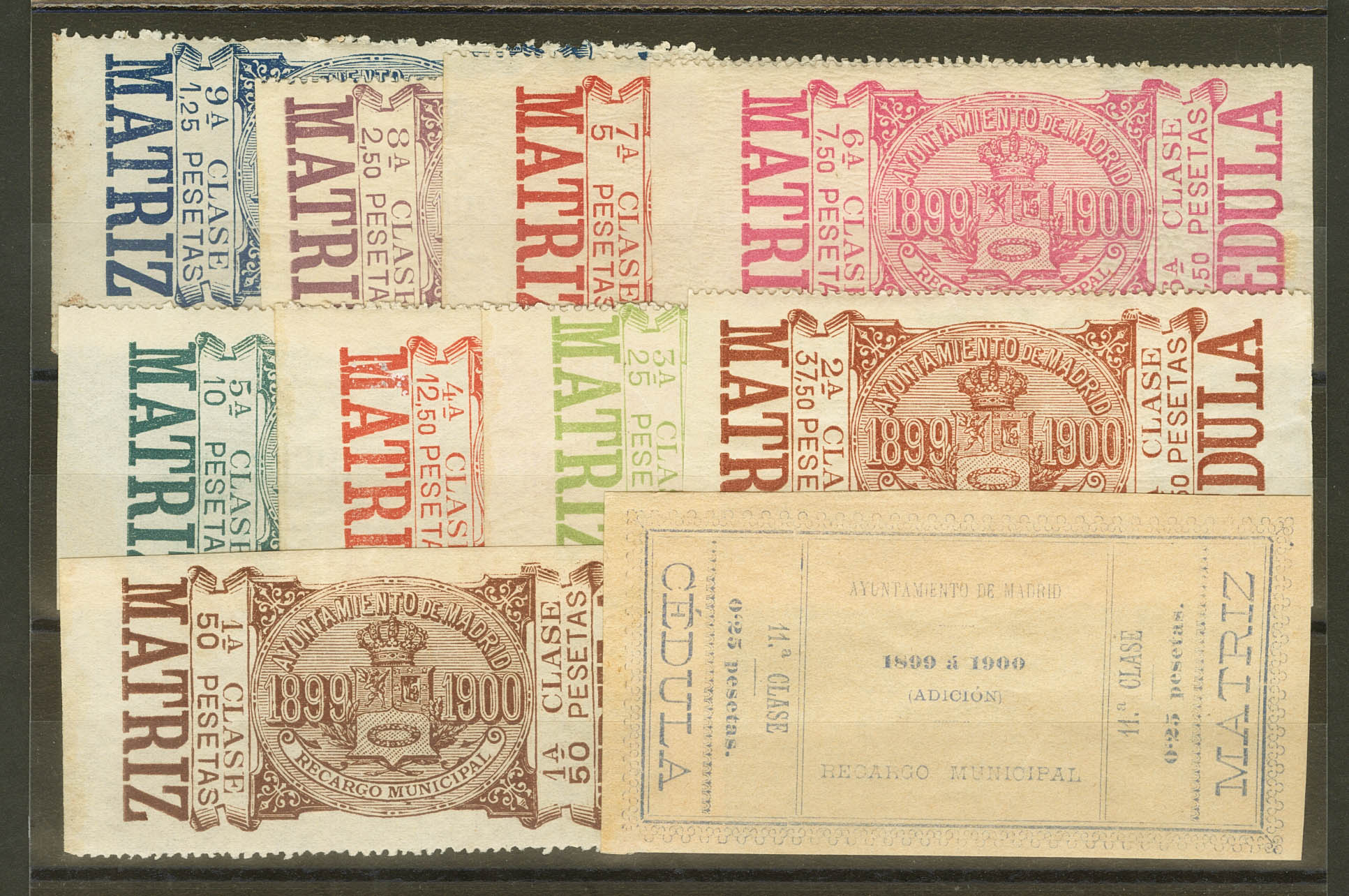 ★/(★)1899. Serie completa, a falta de un 25 cts azul (serie A) y 50 cts ocre. MADRID. IMPUESTO BIENES INMUEBLES. MAGNIFICA. (Barata 14, 16/24)