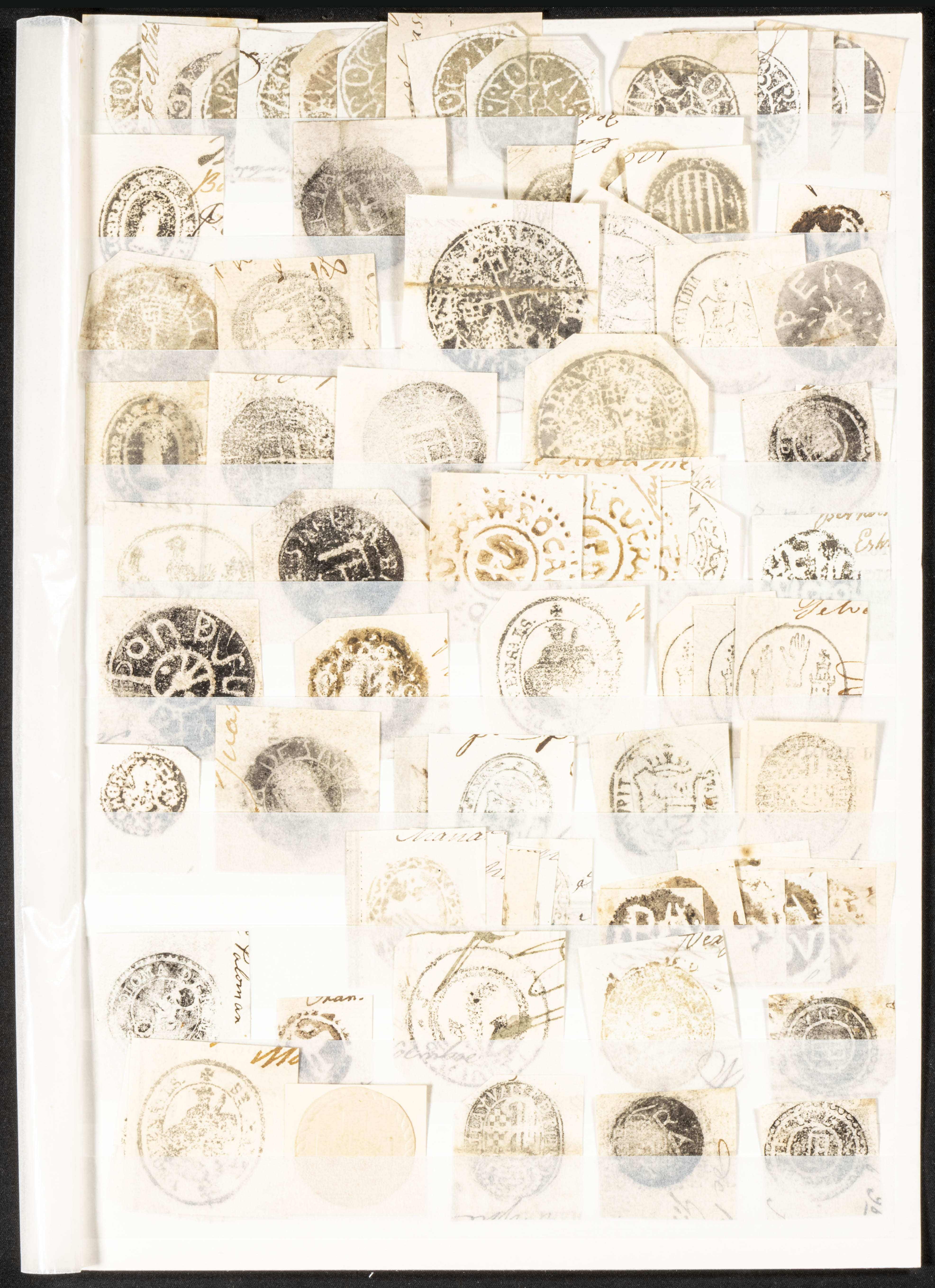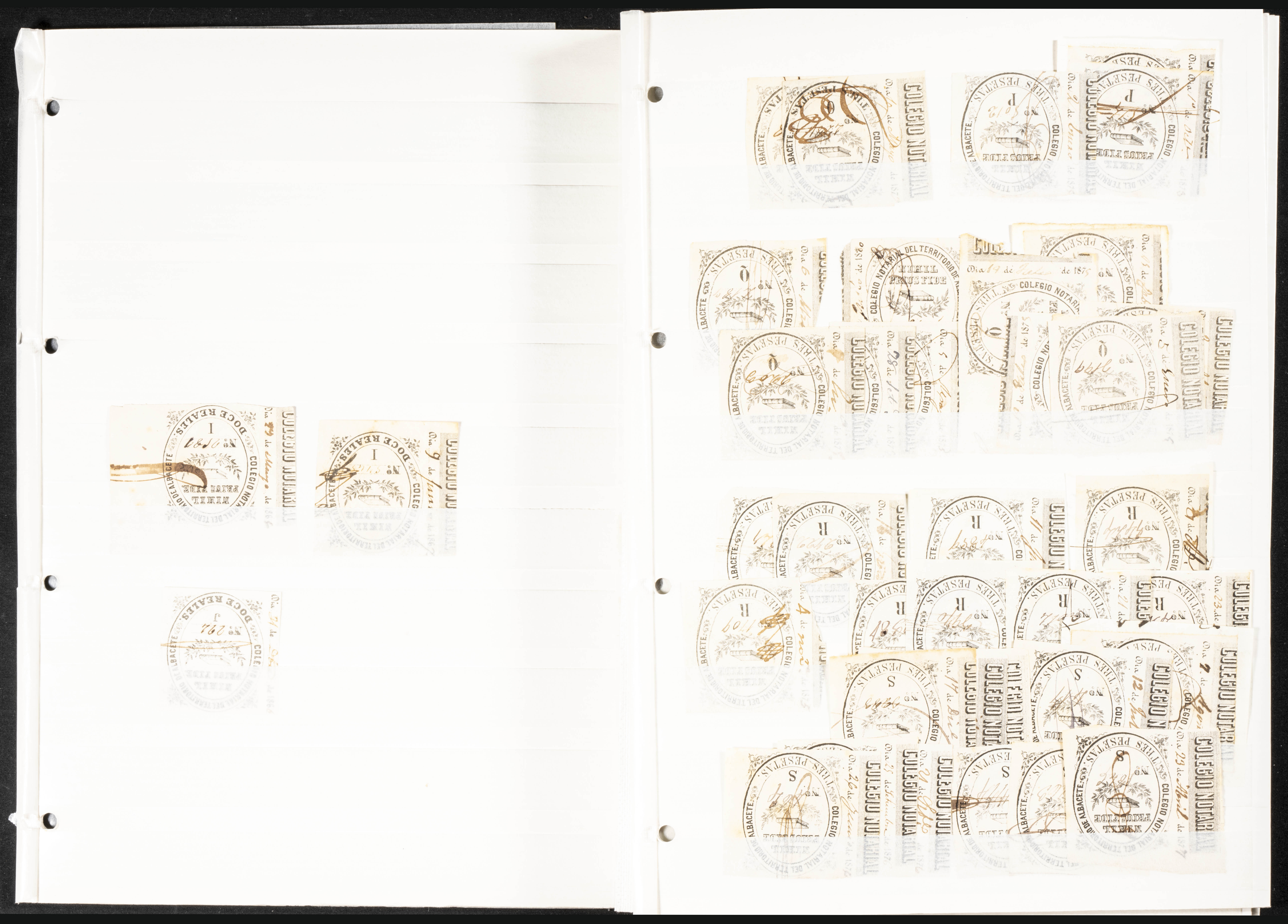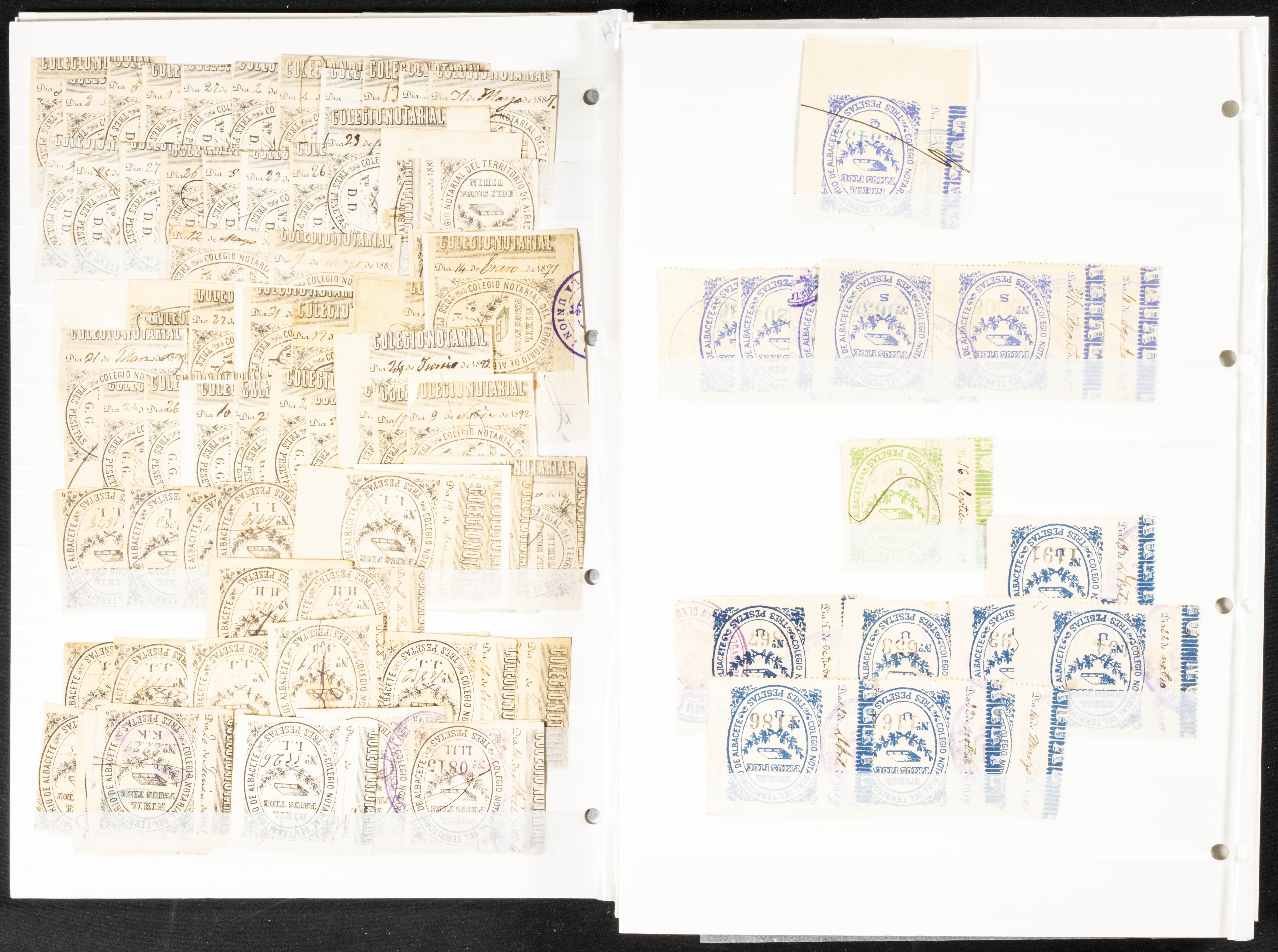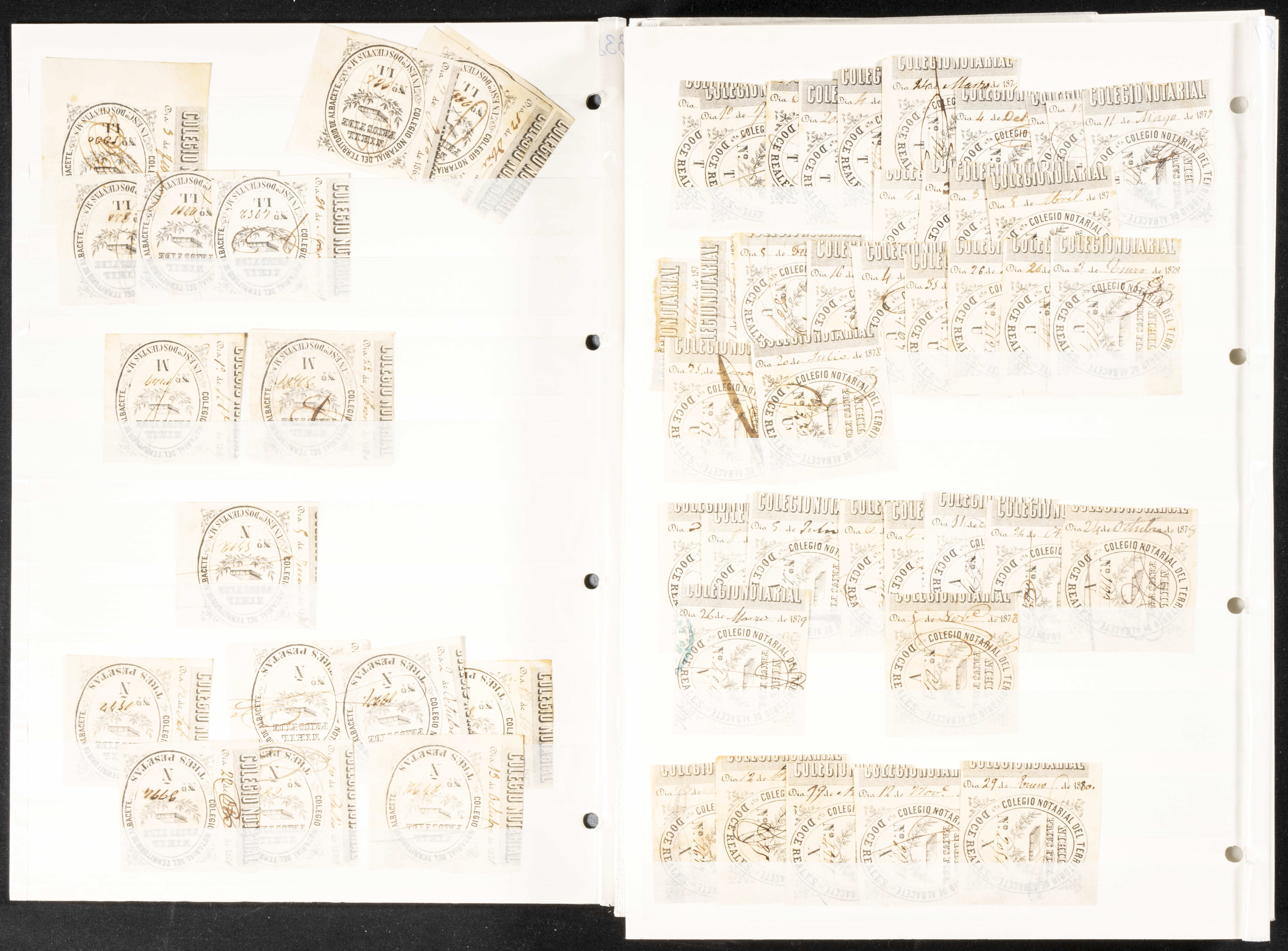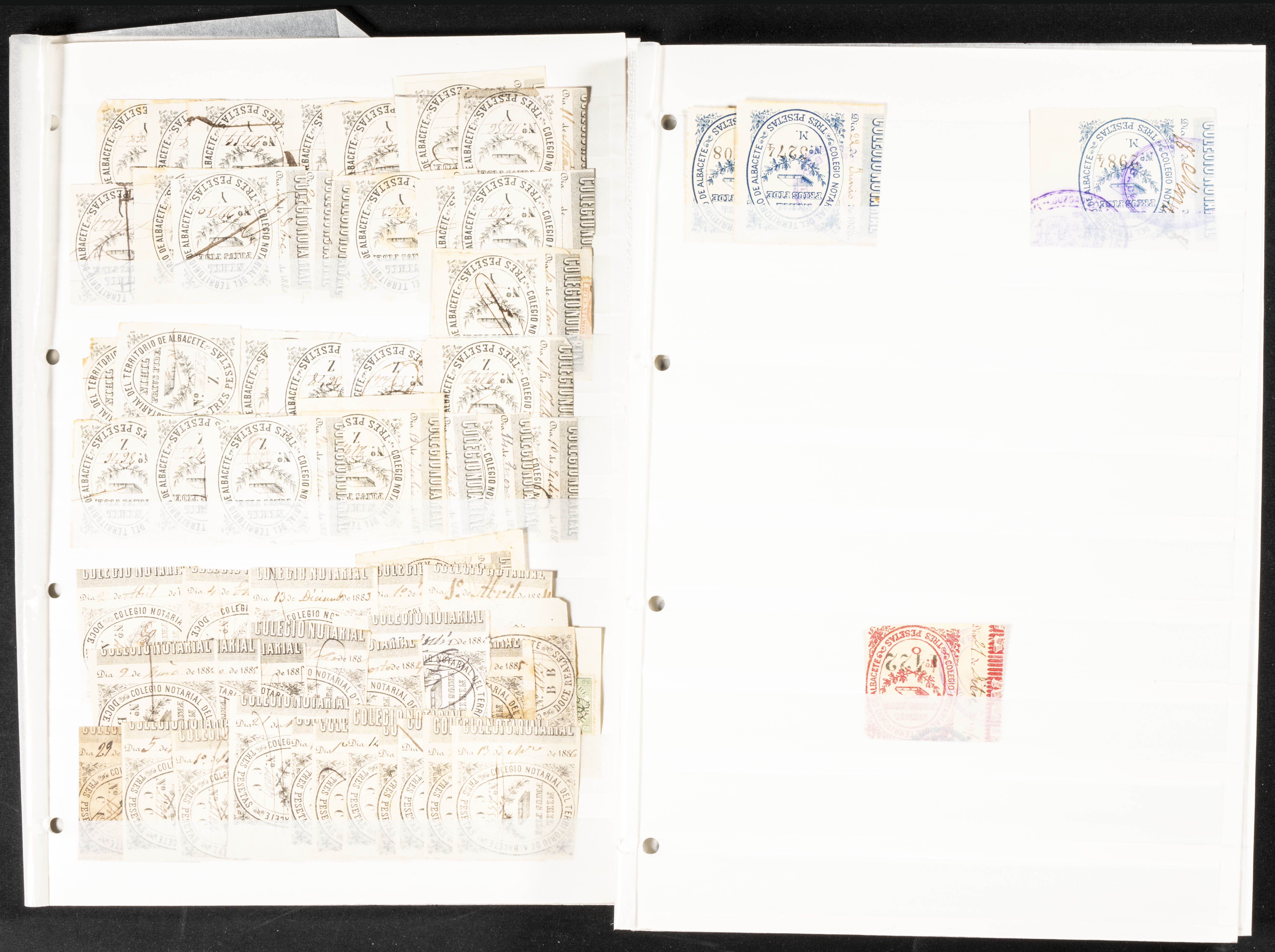(★)/(1850ca). Espectacular conjunto-stock de miles de sellos corporativos de España, Notarios, Procuradores, Abogados, Registradores y Escribanos, comprendidos en su mayoría entre 1850 y 1950, con numerosas repeticiones y organizado por provincias y tipos en hojas clasificadoras. MAGNIFICO Y RARISIMO CONJUNTO, NUNCA HABIAMOS VISTO UN STOCK TAN AMPLIO DE ESTE APARTADO.