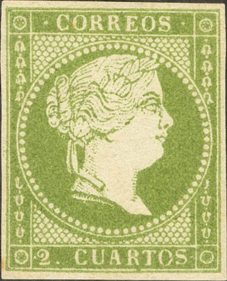 (★) 47. 1855. 2 cuartos verde. Color intenso y buenos márgenes. MAGNIFICO. Cert. COMEX.