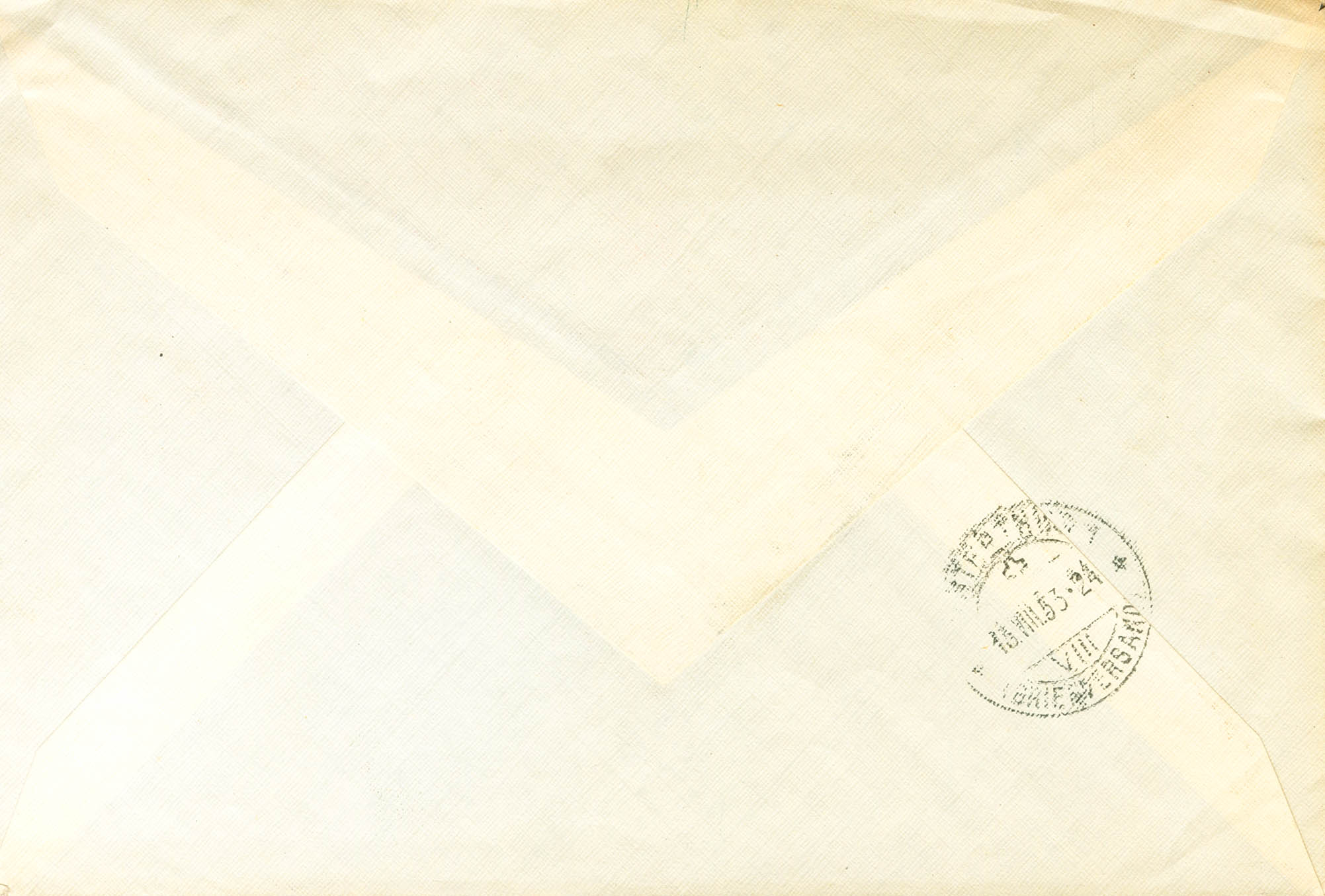 48(2), 50, 53/55, 38. 1953. 25 cts, dos sellos, 30 cts, 90 cts, 1 pts, 1´35 pts y 45 cts rosa. Certificado de ANDORRA LA VIEJA a WINTERTHUR (SUIZA). Al dorso llegada. MAGNIFICA.