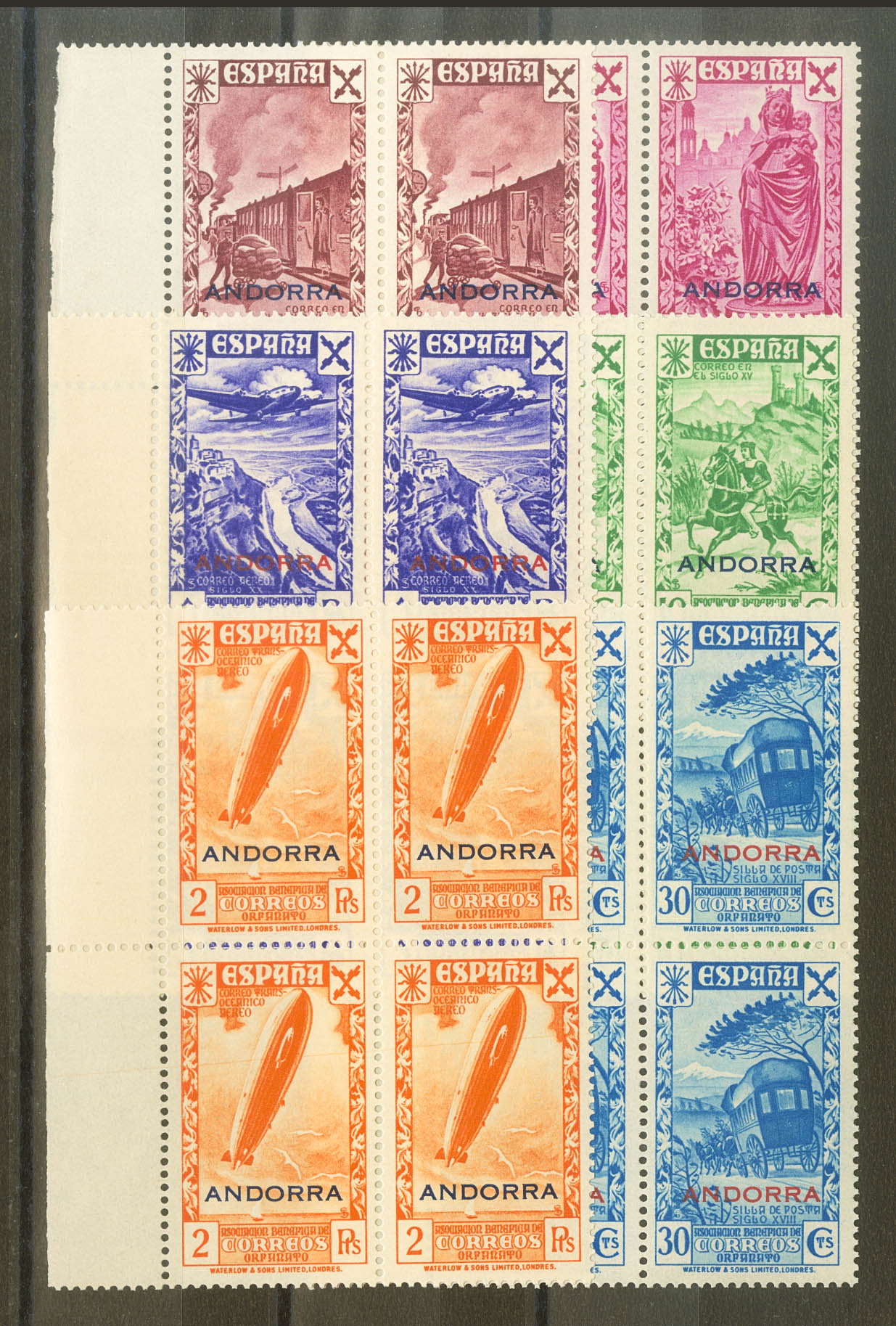 ★★ 7/12(4). 1938. Serie completa, borde de hoja, bloque de cuatro. MAGNIFICA. Edifil 2024: +++1.940 Euros