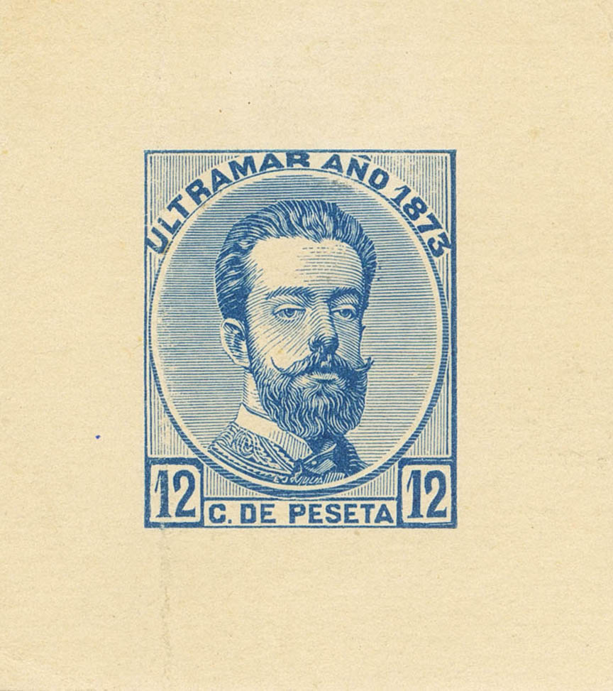 (★) 26P. 1873. 12 cts azul. PRUEBA DE PUNZON. MAGNIFICA Y RARISIMA.