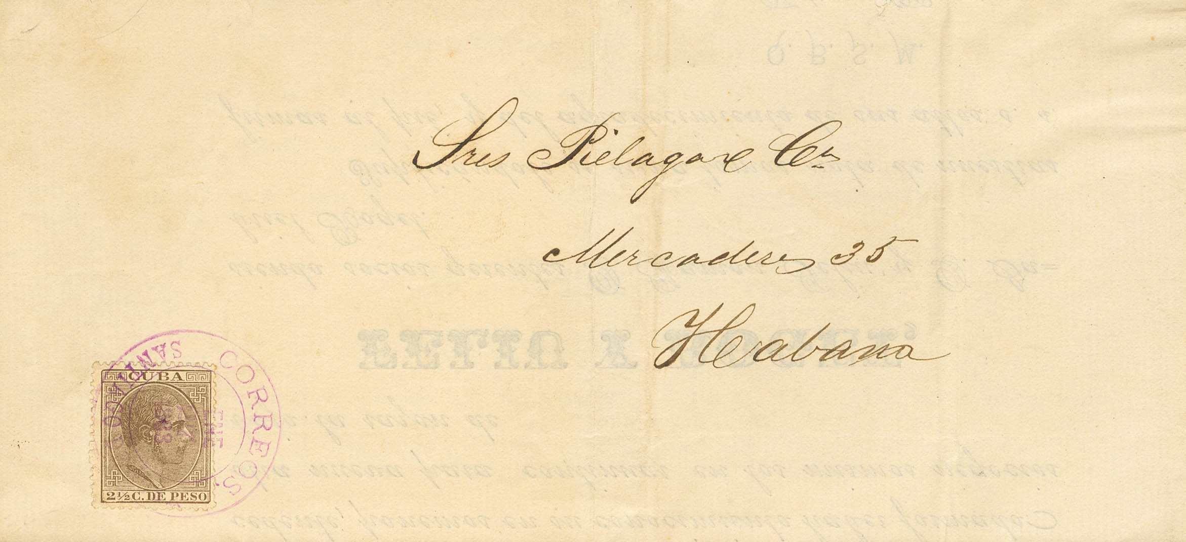 70. 1883. 2½ cts castaño. Impreso de SANTIAGO DE CUBA (CUBA) a LA HABANA. Matasello CORREOS / SANTIAGO DE CUBA. MAGNIFICA.
