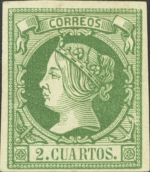 (★) 51. 1860. 2 cuartos verde. Color intenso. MAGNIFICO. Cert CEM.