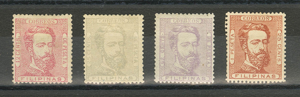 ★/(★) 25, 27/29. 1872. 12 cts rosa, 25 cts gris, 62 cts malva y 1´25 pts castaño amarillo. MAGNIFICOS. Edifil 2024: 205 Euros
