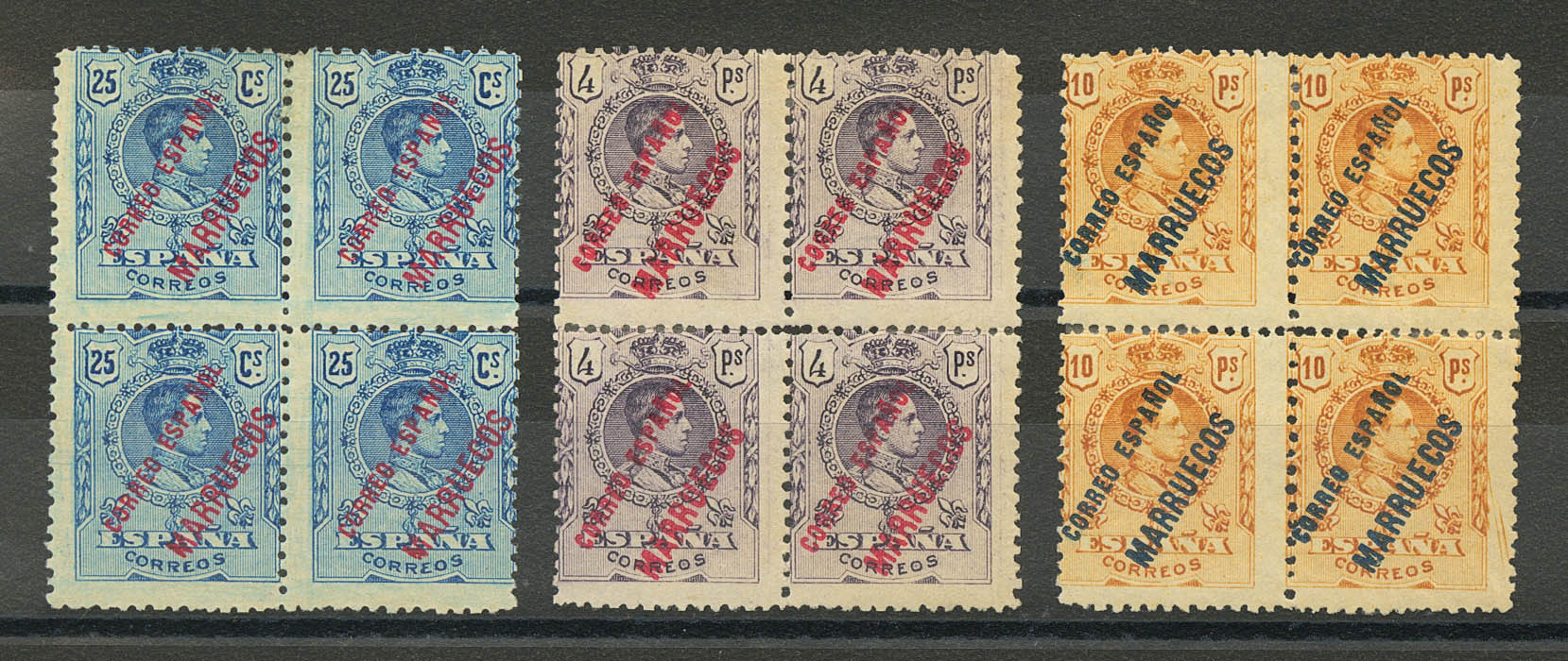 ★ NE1/3(4). 1909. Serie completa, en bloque de cuatro. NO EMITIDA. BONITA Y RARISIMA EN BLOQUE. Edifil 2024: 1.260 Euros