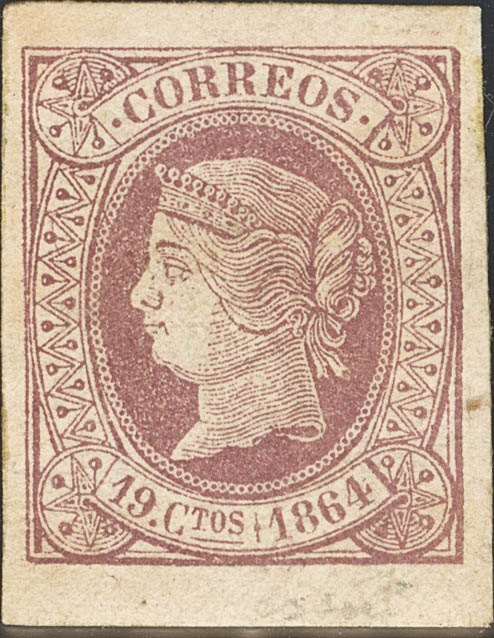 ★ 66F. 1864. 19 cuartos violeta. FALSO SPERATI, al dorso la firma de Jean Sperati y sin la marca de la B.P.A. MAGNIFICO.