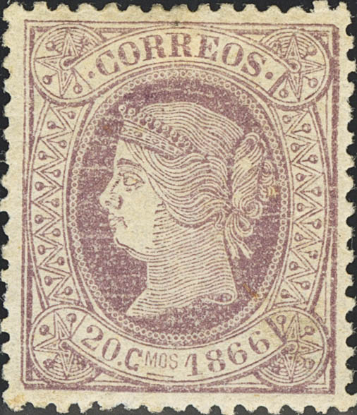 ★ 86. 1866. 20 cts lila. Centraje excepcional. MAGNIFICO Y MUY RARO EN ESTA CALIDAD. Cert. COMEX.