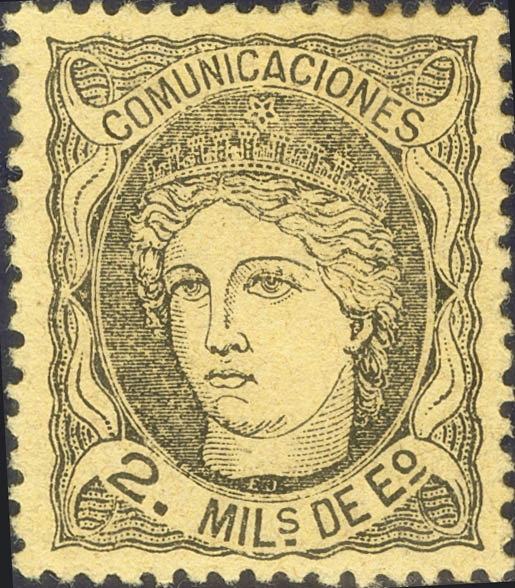 (★) 103. 1870. 2 mils negro. Excelente centraje y color. PIEZA DE LUJO.