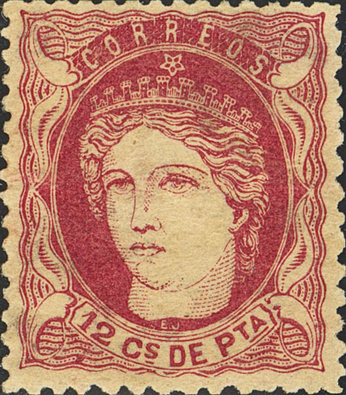 ★ NE3. 1870. 12 cuartos rosa carmín (dentado retocado). NO EMITIDO. MAGNIFICO Y RARO. Dictamen CEM.