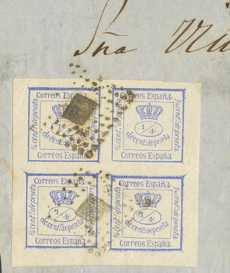 △ 115, 130. 1873. 4/4 cts ultramar y 4/4 cts verde amarillo, sobre fragmentos. MAGNIFICOS.
