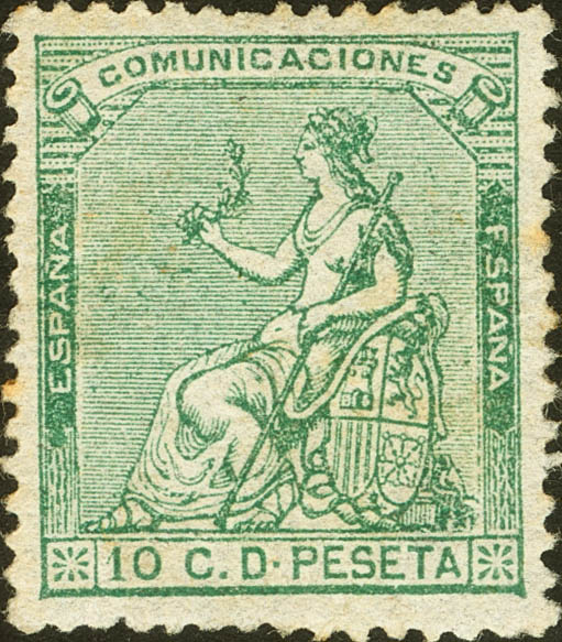 ★ 133. 1873. 10 cts verde. Excelente centraje. MAGNIFICO.