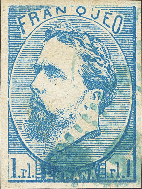 156. 1873. 1 real azul (pequeñas claridades). Matasello ROMBO DE PUNTOS. MAGNIFICO.