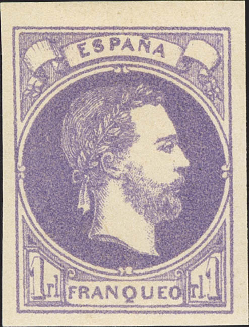 ★ 158. 1874. 1 real violeta. Color intenso y grandes márgenes. MAGNIFICO. Cert. CEM.